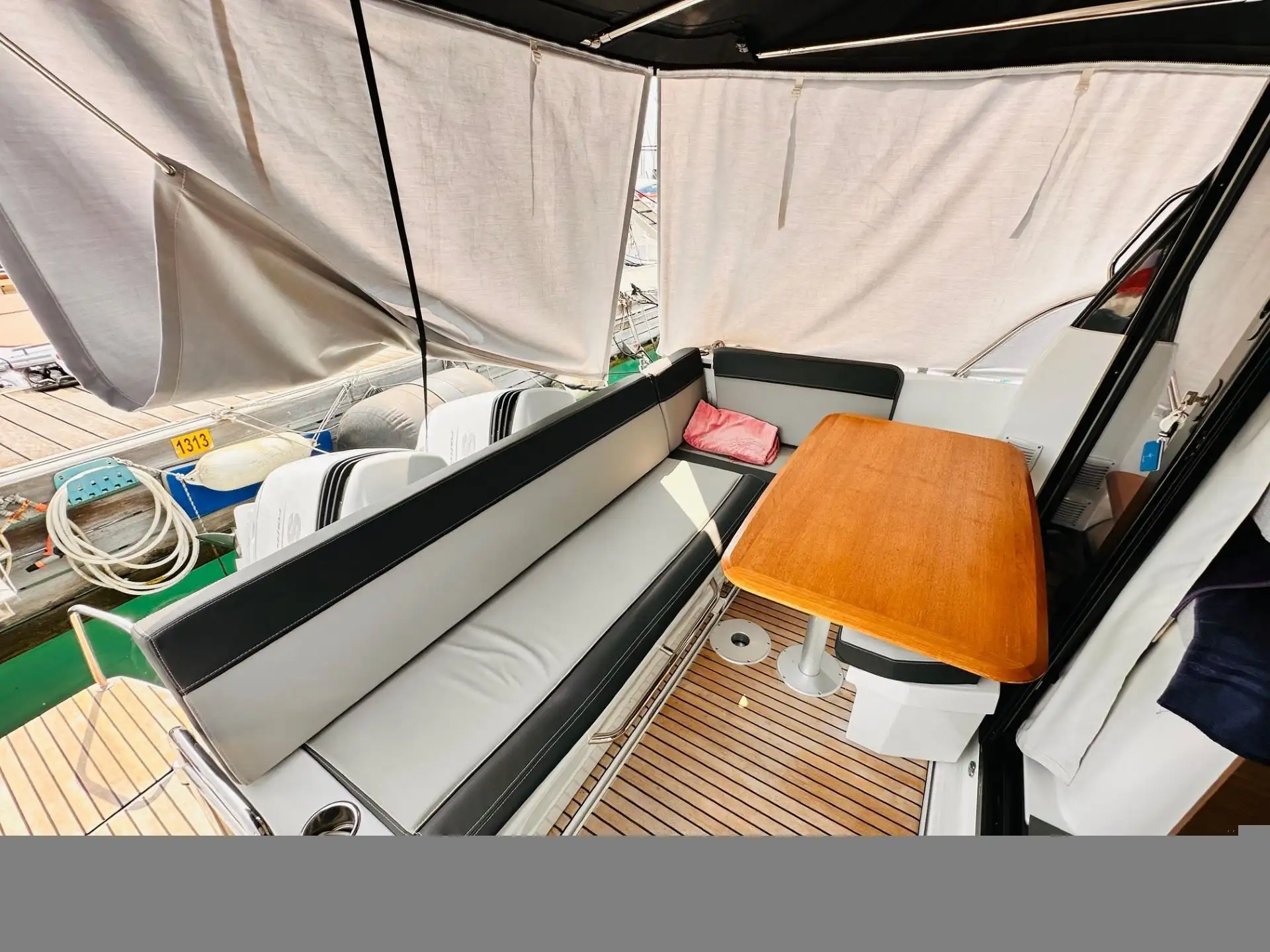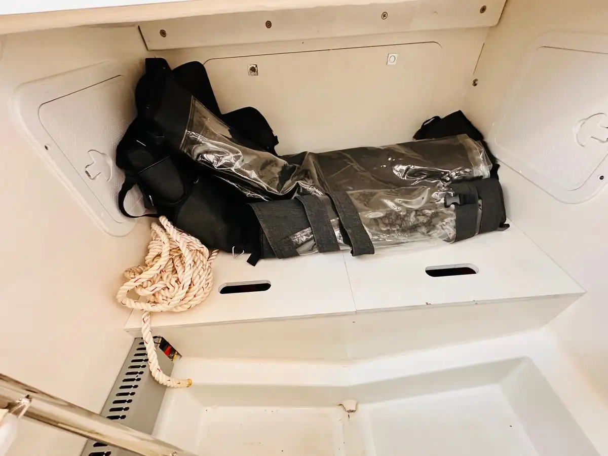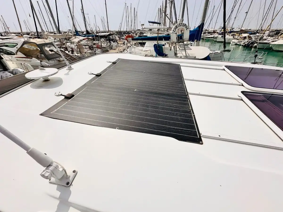 Très bien équipé : panneau solaire avec gestionnaire de batterie, VHF AIS, sondeur, GPS, pack hifi Fusion, propulseur d’étrave, flaps électriques, fermetures arrière, réservoir d’eau supplémentaire (100L), TV + antenne, cockpit en teck. Un bateau entretenu avec soin, prêt à vous offrir des navigations inoubliables.