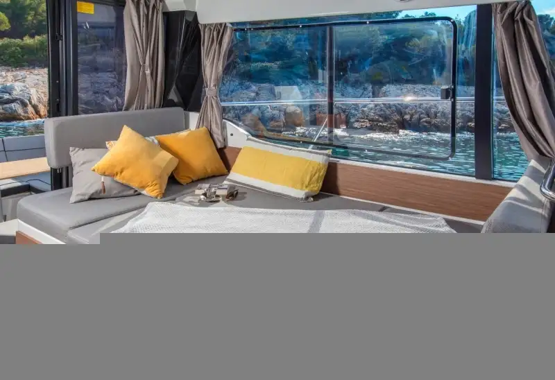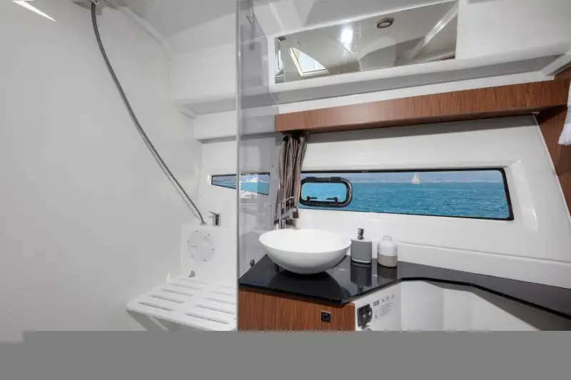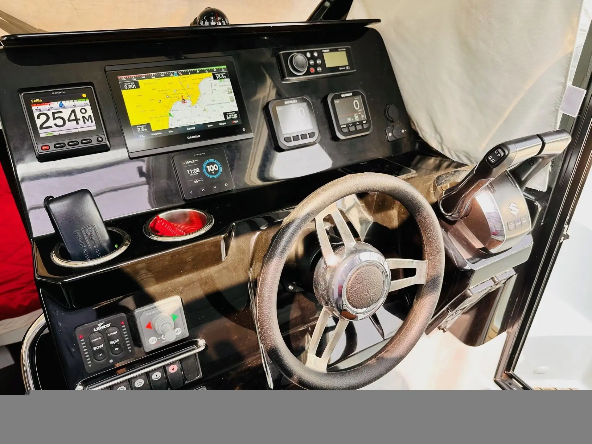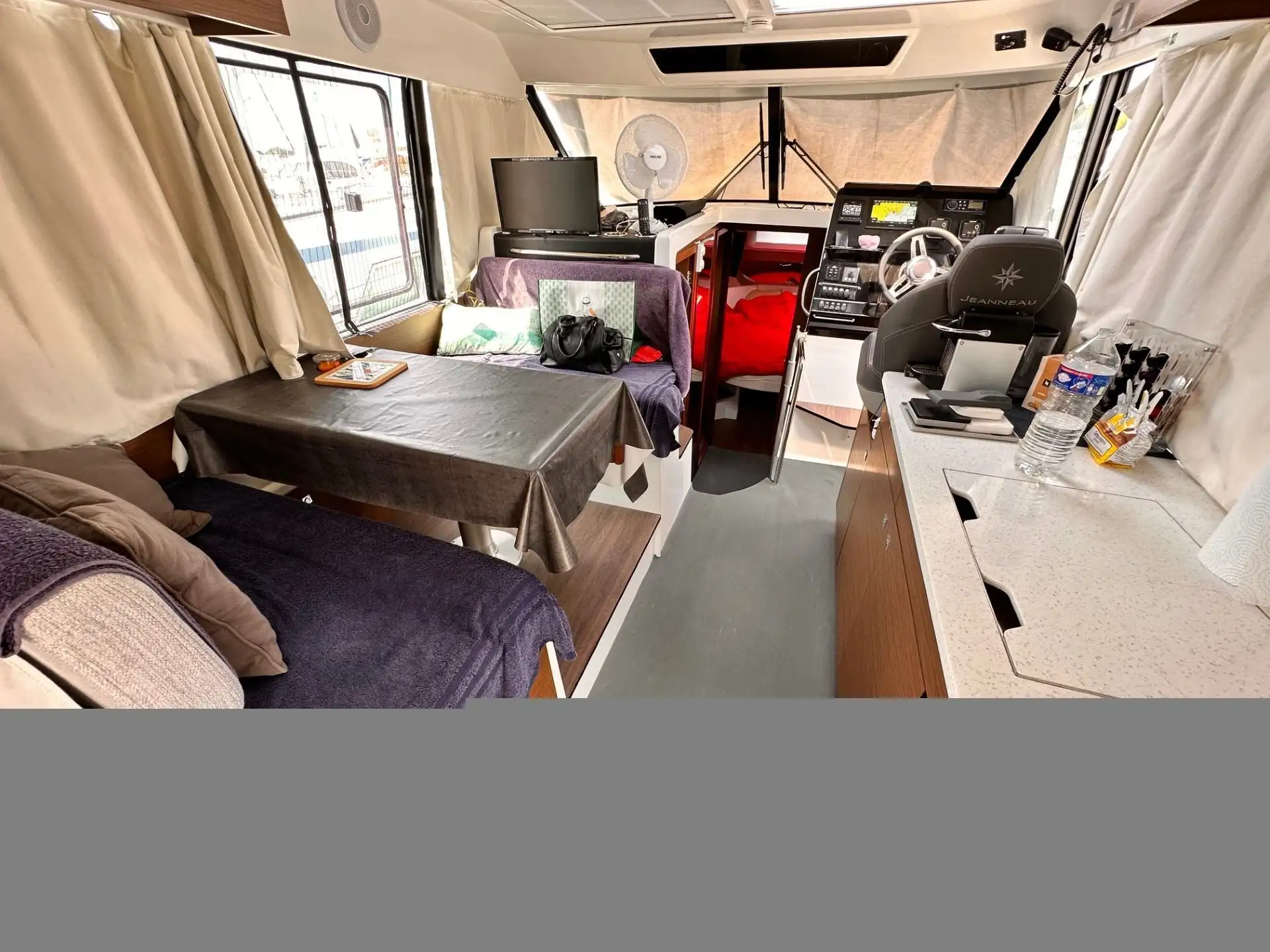 Très bien équipé : panneau solaire avec gestionnaire de batterie, VHF AIS, sondeur, GPS, pack hifi Fusion, propulseur d’étrave, flaps électriques, fermetures arrière, réservoir d’eau supplémentaire (100L), TV + antenne, cockpit en teck. Un bateau entretenu avec soin, prêt à vous offrir des navigations inoubliables.