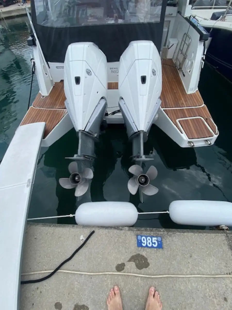 Propulsé par 2 moteurs Mercury de 300 CV, il offre des accélérations franches, une navigation fluide et réactive, et des performances marines qui séduiront les amateurs de sensations fortes comme les plaisanciers exigeants.