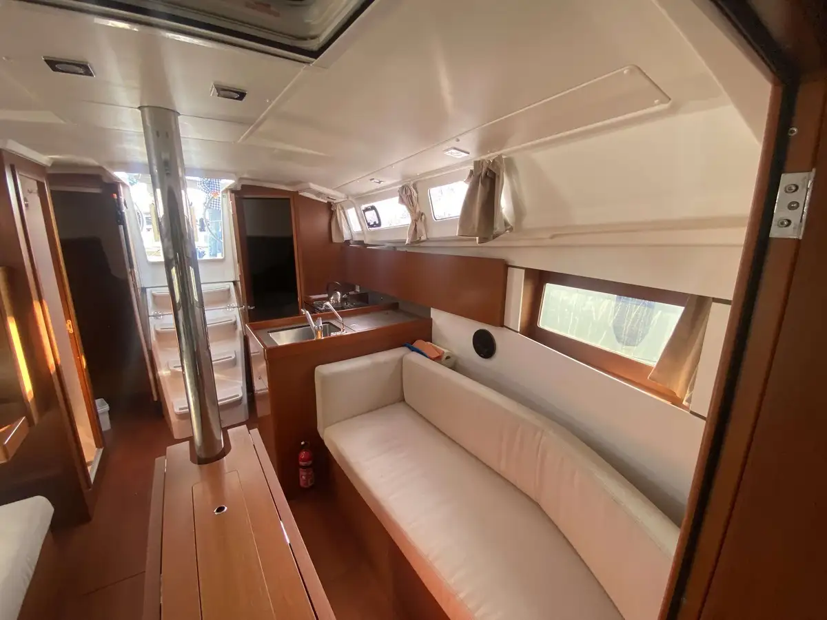 l'Oeanis 35.1 est le voilier de croisière de 35 pieds idéal pour vos croisières prolongées en Méditerranée : facile à manœuvrer grâce à ses voiles sur enrouleur, et particulièrement agréable à vivre grâce à son grand volume intérieur, moderne et convivial. Il offre deux belles cabines, un vaste carré baigné de lumière grâce à ses vitrages continus et à ses hublots de coque ainsi qu’une très belle hauteur sous barrots.