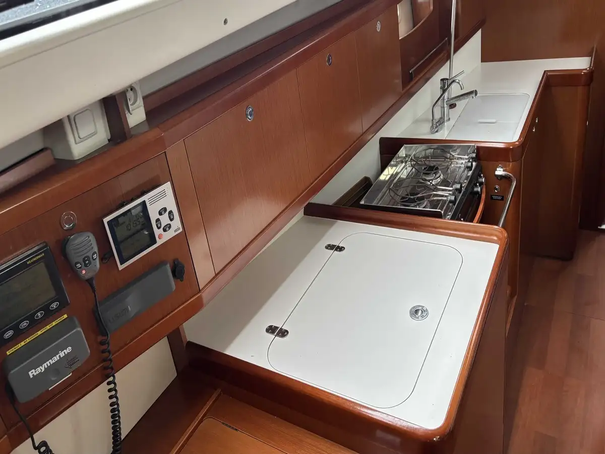 Un refit lustrage coque, joint de sail drive, révision moteur complète par notre chantier Euro-voiles fait de cet Océanis 43 la meilleure affaire sur le marché de très loin.