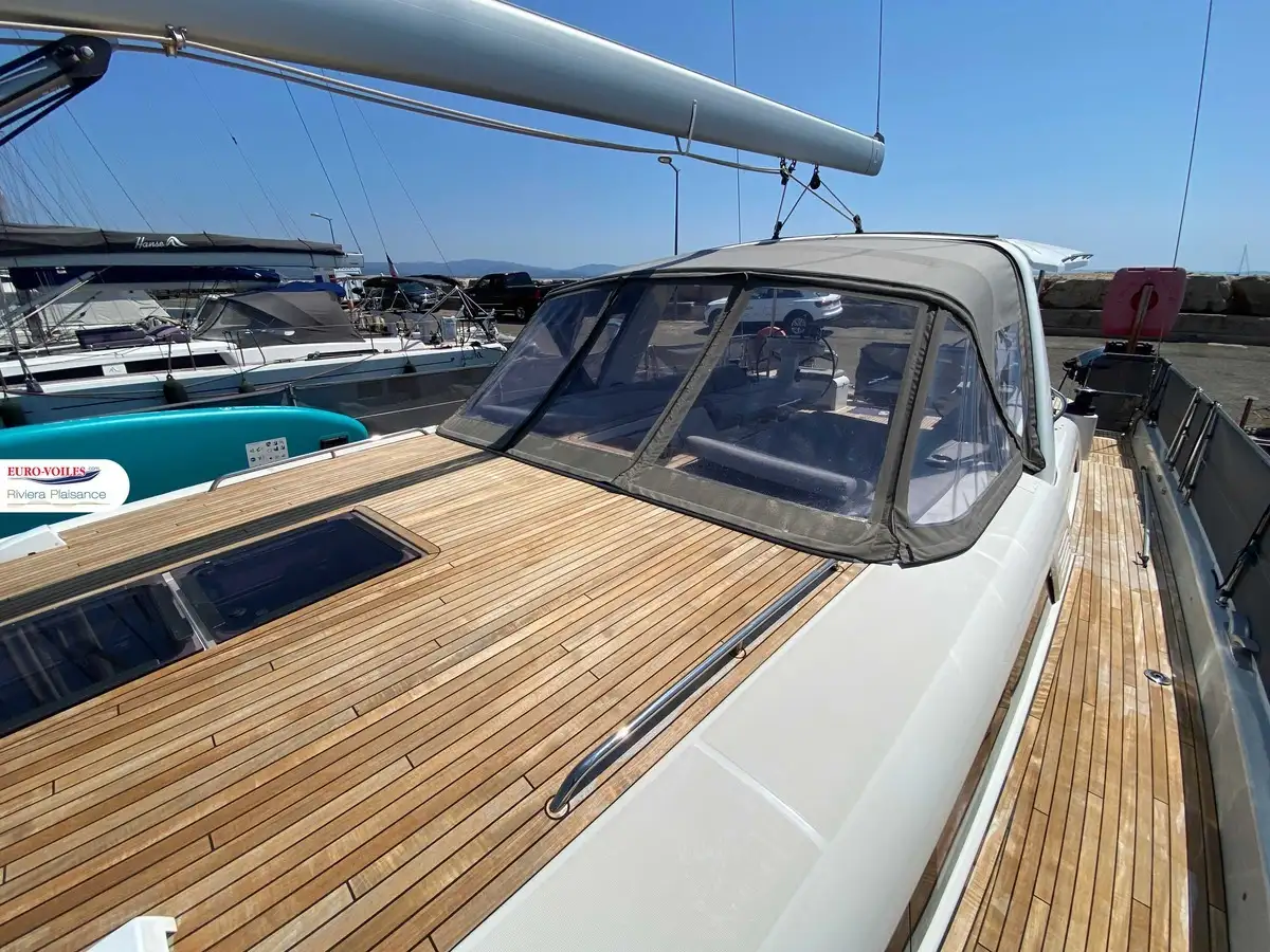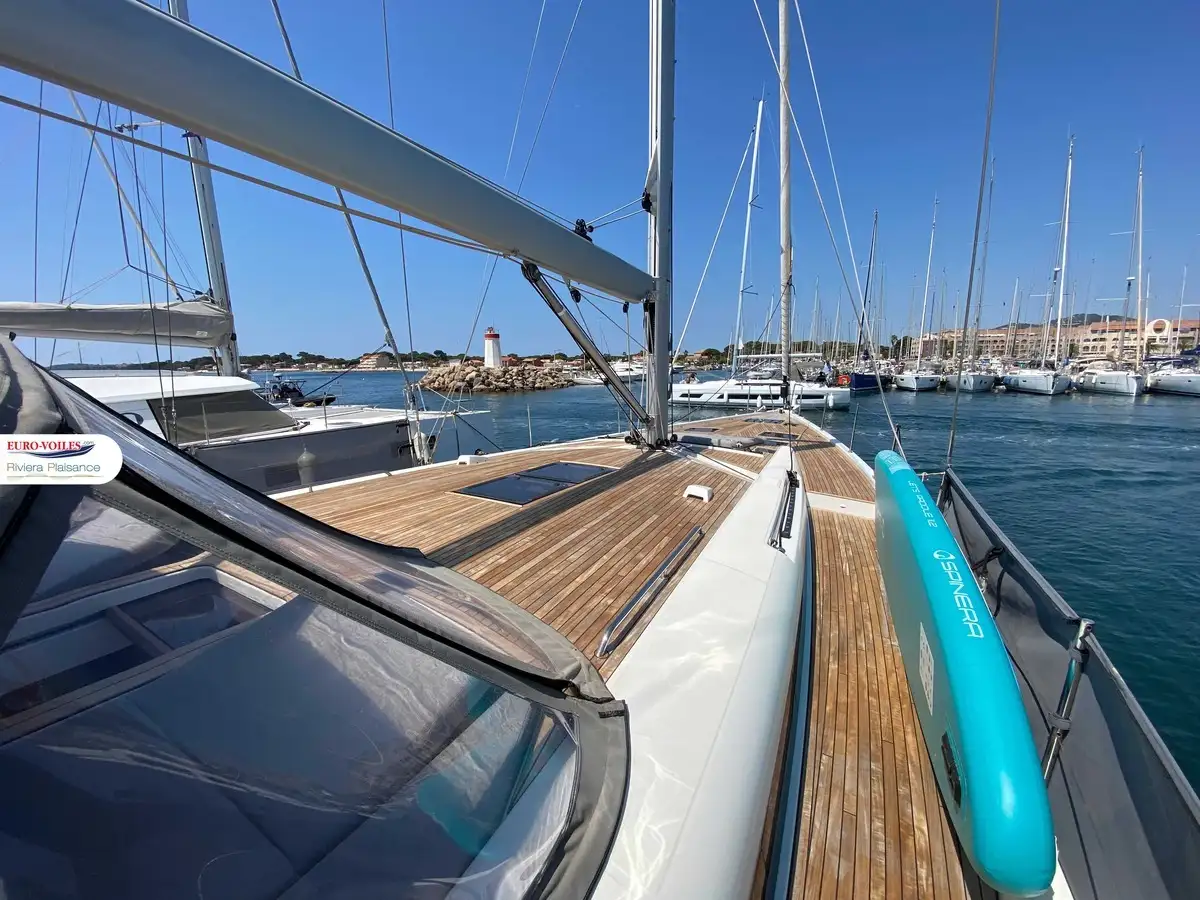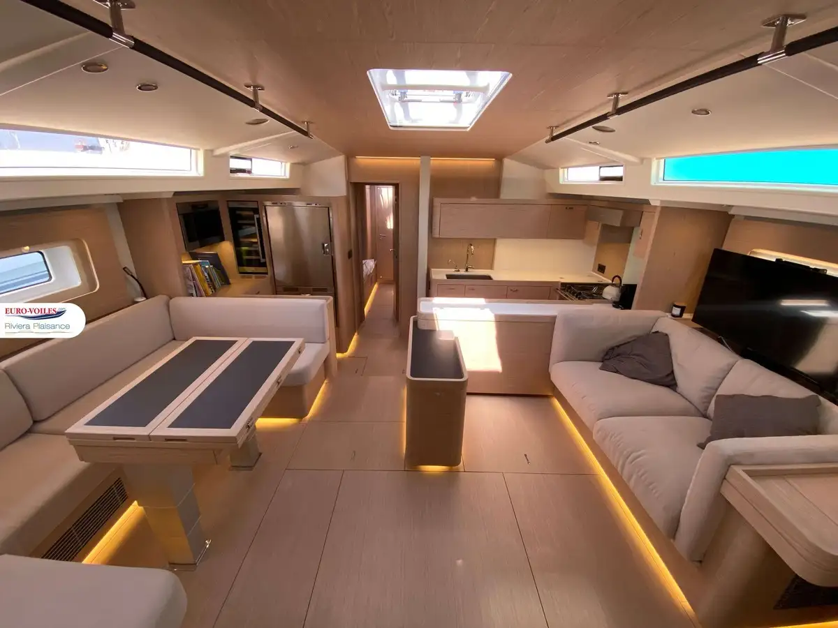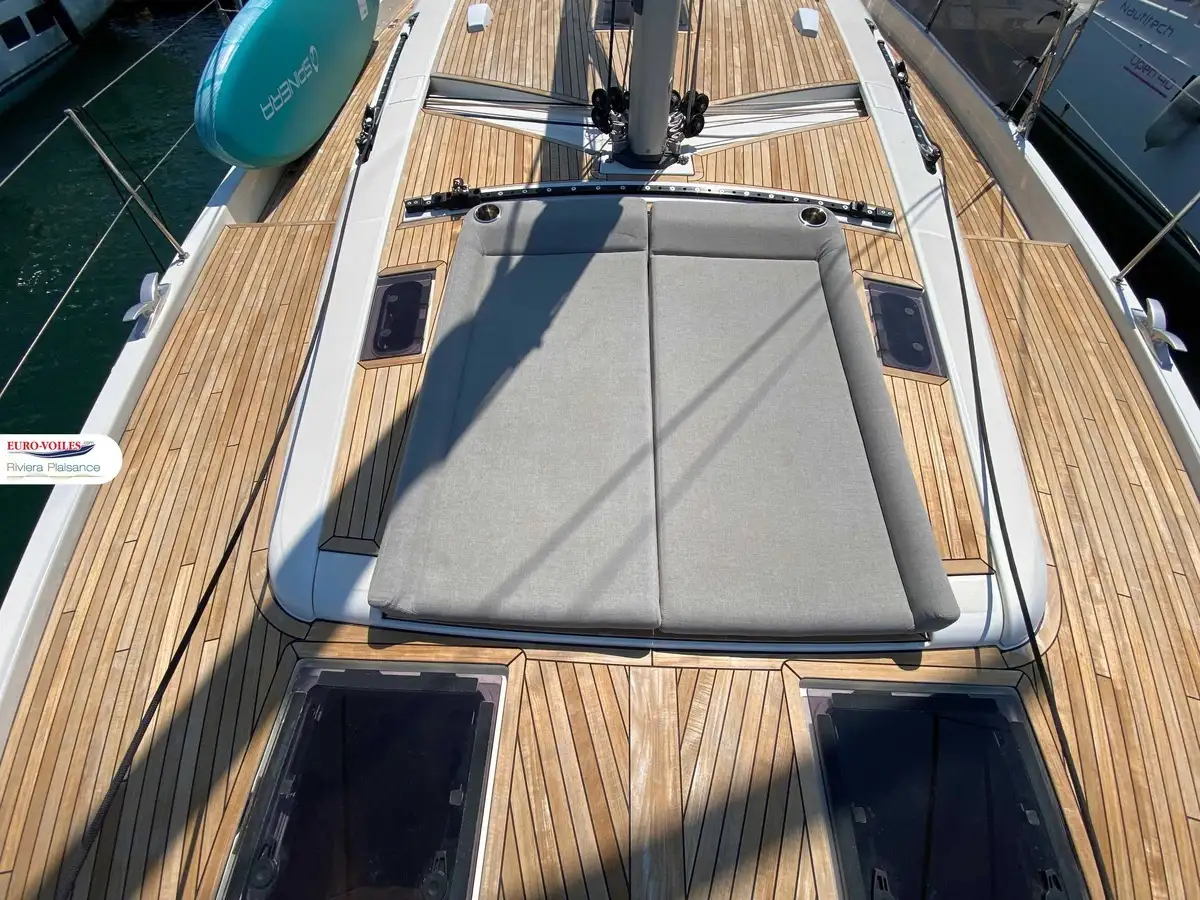 L’intérieur, baigné de lumière naturelle grâce aux nombreuses ouvertures, dévoile une finition haut de gamme et des volumes impressionnants pour un voilier de cette catégorie. Le carré spacieux, la cuisine moderne et ses cabines offrent un véritable confort de vie à bord, avec une suite propriétaire d’un standing remarquable. Le tout est accompagné d’un équipement complet pensé pour l’autonomie et le plaisir à bord : groupe électrogène, dessalinisateur, climatisation, buanderie équipée, électronique haut de gamme, propulseurs d’étrave et de poupe, et bien plus encore. Ce modèle dispose également d’une élégante passerelle hydraulique télécommandée pour un accès à bord pratique et sécurisé.