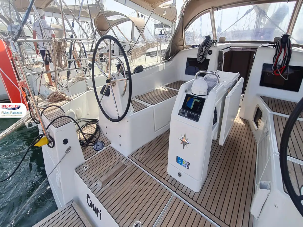 Découvrez CAURI, un Sun Odyssey 410 de 2020 en exclusivité Groupe Euro-Voiles, prêt à repartir pour de belles croisières côtières ou hauturières ! Ce voilier allie confort, luminosité et performance avec une finition Préférence soignée (éclairages LED tamisés, vaigrages capitonnés, rangements astucieux, cave à vin). Son intérieur propose 3 cabines spacieuses, dont une master, et une salle d’eau avec WC électriques. La cuisine centrale est fonctionnelle et équipée (eau douce et eau de mer, pompe de vidange pour le frigo), le carré chaleureux avec table télescopique, télévision et cave à vin apportant une touche de confort supplémentaire.Le cockpit ergonomique, avec plancher en teck, plage de bain escamotable motorisée, large bimini, douchette et grande table de cockpit, garantit une qualité de vie à bord exceptionnelle, aussi bien en navigation qu’au mouillage. Les passe-avant en pente permettent une circulation fluide vers l’avant, tandis que les deux panneaux solaires de 130W assurent une belle autonomie.Côté navigation, ce 410 est équipé pour des manœuvres précises et simples grâce à sa grand-voile semi-lattée, génois performance sur enrouleur, winch électrique, barber-hauler, gréement de spi et Code H Rolly Tasker. L’électronique complète (traceur de cartes Navionics, pilote automatique, radar Raymarine Quantum, sondeur avant MG avec second traceur de cartes MG, guindeau électrique avec 50 m de chaîne) facilite vos navigations en toute sérénité.