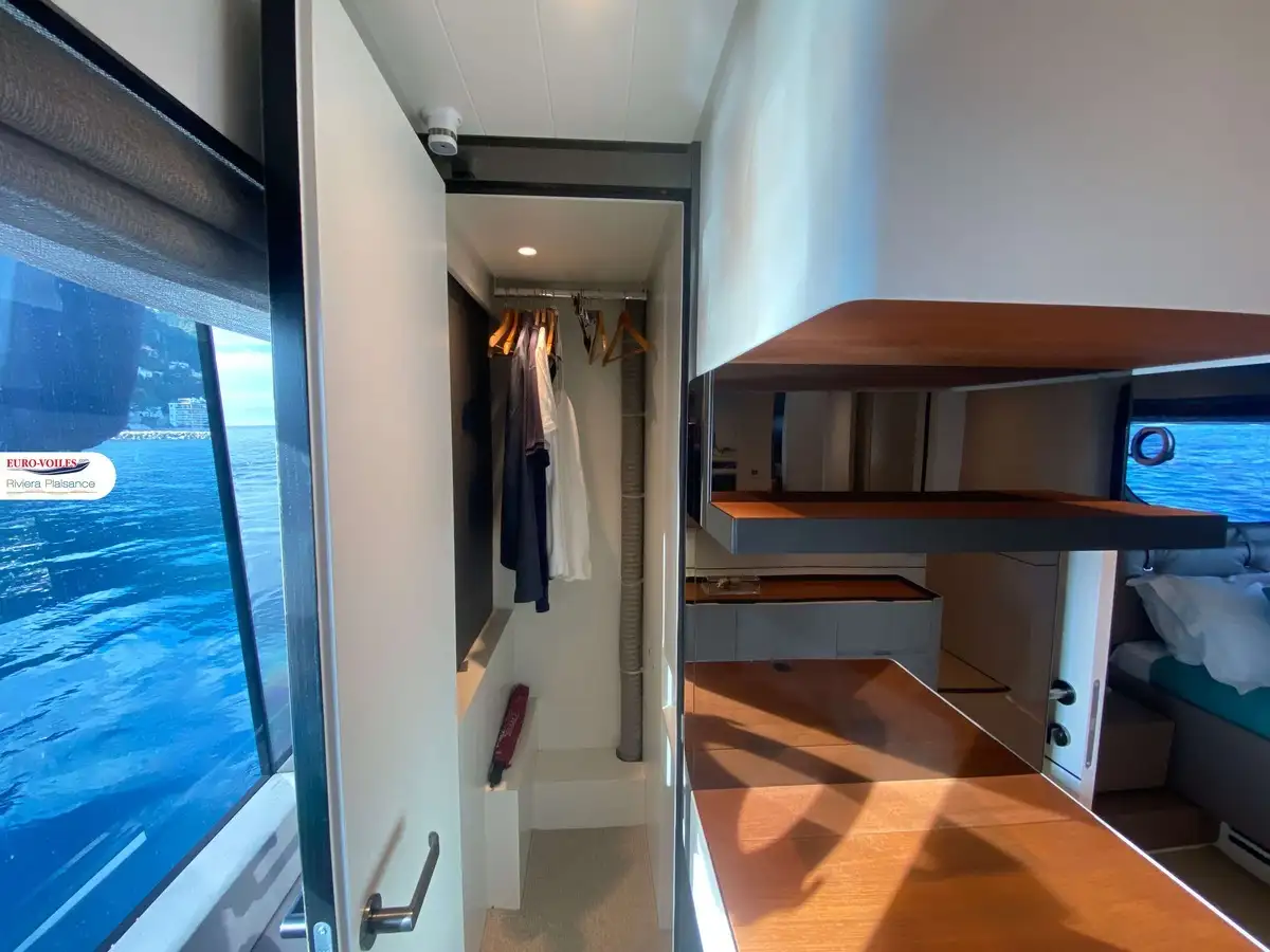 Propulsé par deux moteurs VOLVO IPS 1350 avec seulement 430 heures de navigation, il est équipé de nombreux équipements, notamment un stabilisateur Seakeeper, un générateur, la climatisation, un joystick à double poste et bien plus encore.