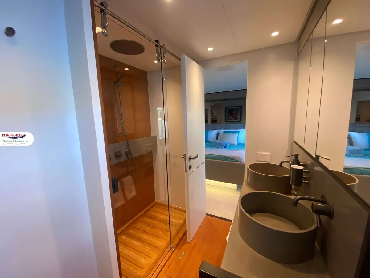 Une fusion exquise d'espace, de style et de puissance, conçu pour ceux qui exigent l'excellence, ce yacht offre de vastes espaces extérieurs, idéaux pour la détente ou les divertissements. Les espaces intérieurs sont tout aussi impressionnants, avec trois cabines magnifiquement conçues, une cuisine entièrement équipée, un salon avec une vue imprenable sur la mer et des finitions luxueuses avec une sélection raffinée de meubles Paola Lenti.