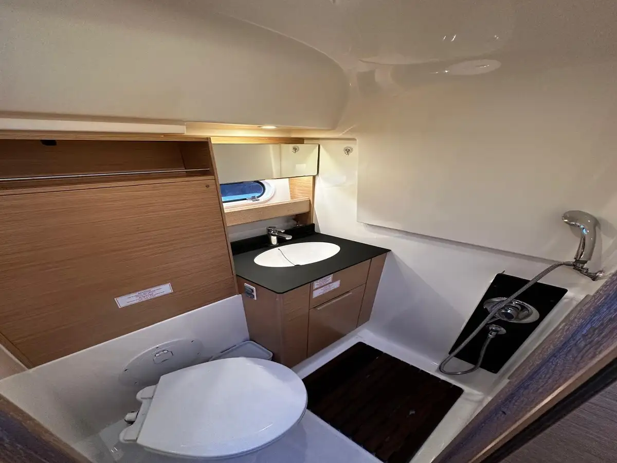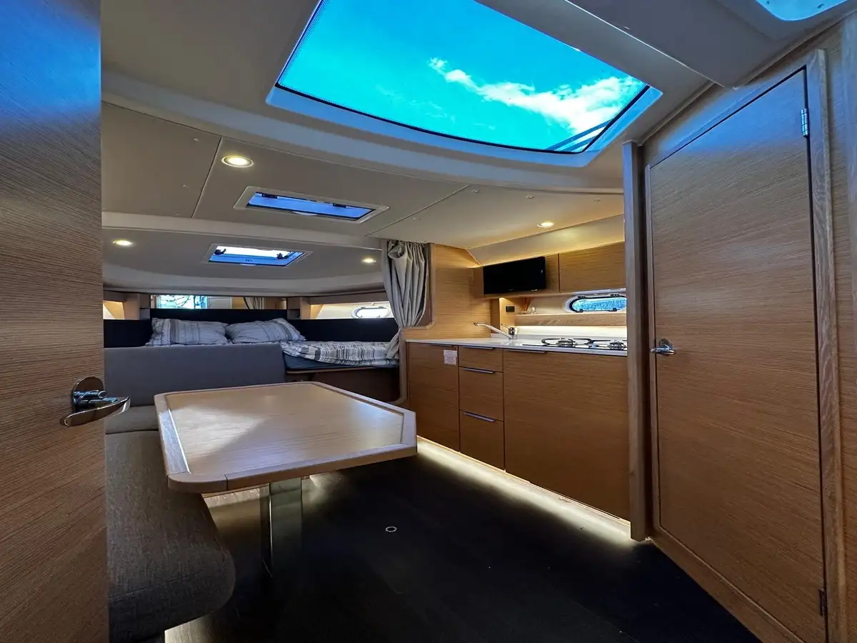Avec ses 10 mètres de long, ce bateau offre un volume de vie exceptionnel pour sa catégorie. L’intérieur, lumineux et chaleureux, se distingue par ses boiseries claires, ses finitions soignées et ses nombreux rangements. L’éclairage élégant crée une ambiance cosy et raffinée, idéale pour profiter pleinement de chaque moment à bord.