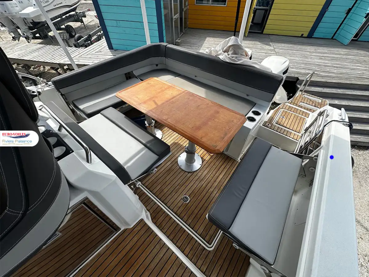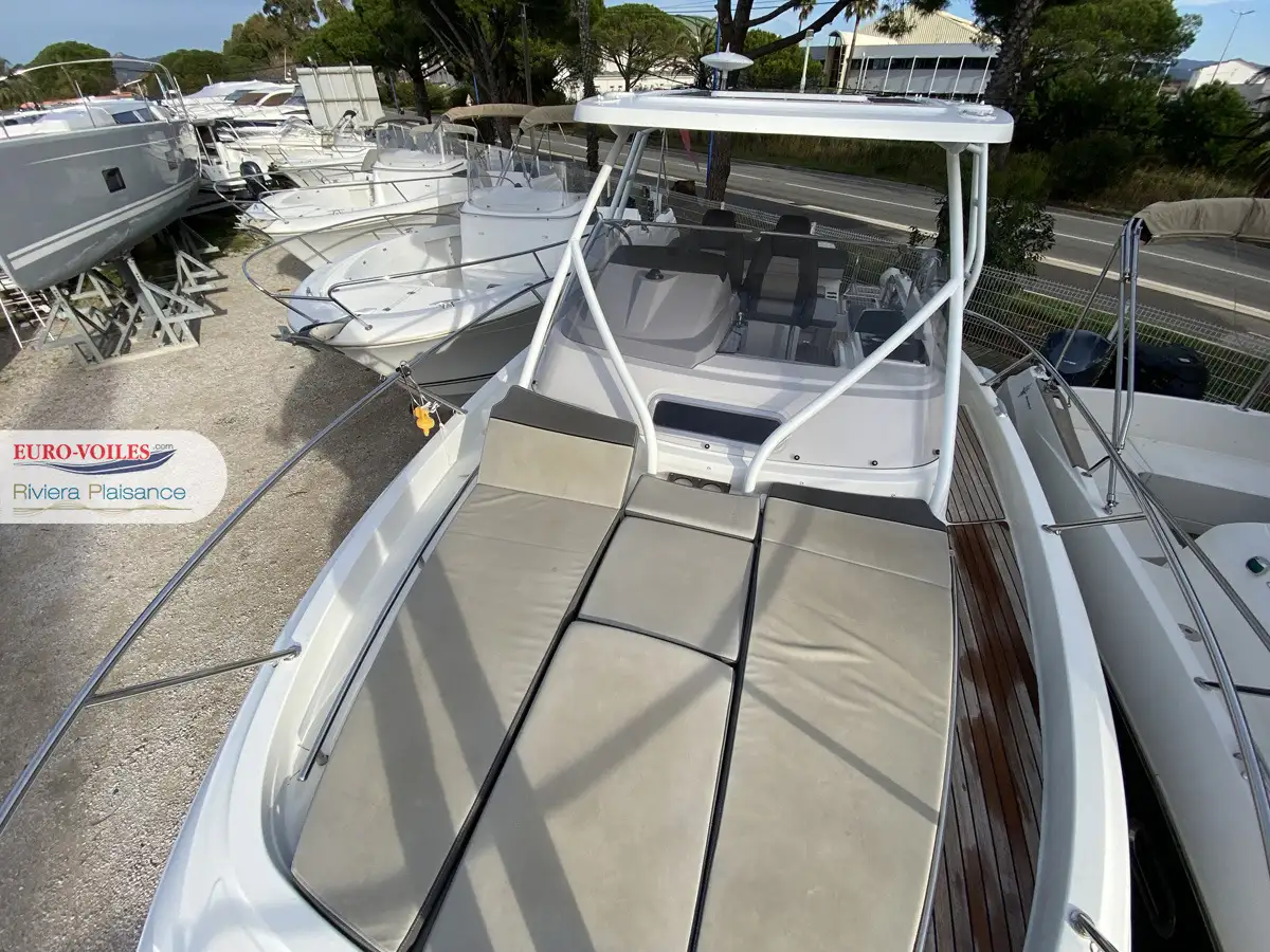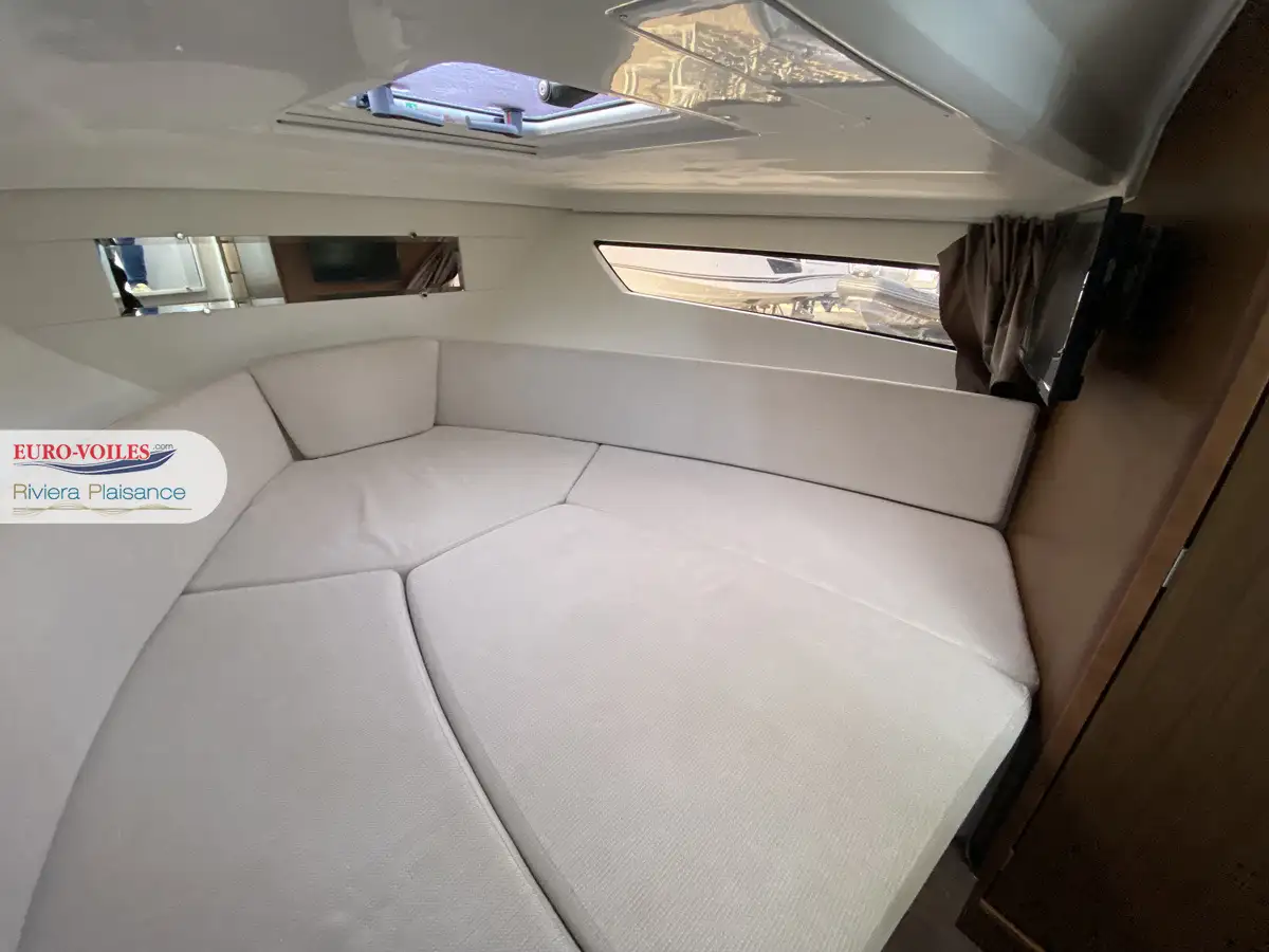 Version T-TOP avec casquette coulissante de cockpit et panneaux solaire, propulseur d'étrave avec batterie supplémentaire, flaps électrique, mat de ski, bain de soleil avant avec dossiers relevables, table de cockpit en teck télescopique transformable en bain de soleil arrière, banquette latérale repliable a bâbord, fond de cockpit lattées teck et passavant bâbord latte teck, GPS Sondeur GARMIN, TV et antenne dans le carré, complément de couchage, prise direct d'eau douce au quai, kit de housses de protection, paroi de douche + assise sur les toilettes, rideaux intérieurs, prise de quai avec chargeur 220V et prise dans la cabine, frigo de cockpit 49L et frigo intérieur 65L , plaque de cuisson gaz + évier dans le cockpit, plateformes de bain lattées teck, Pack FUSION AUDIO..