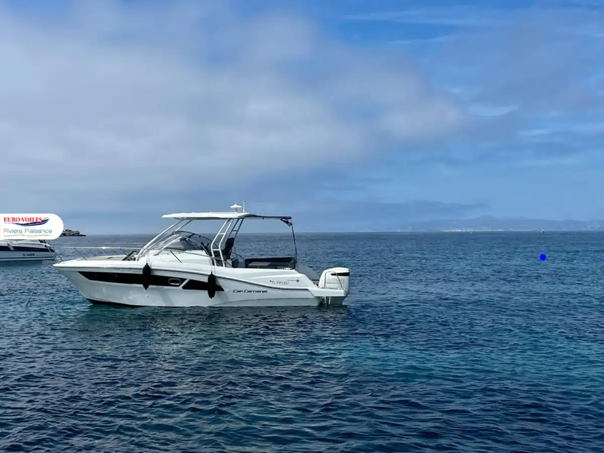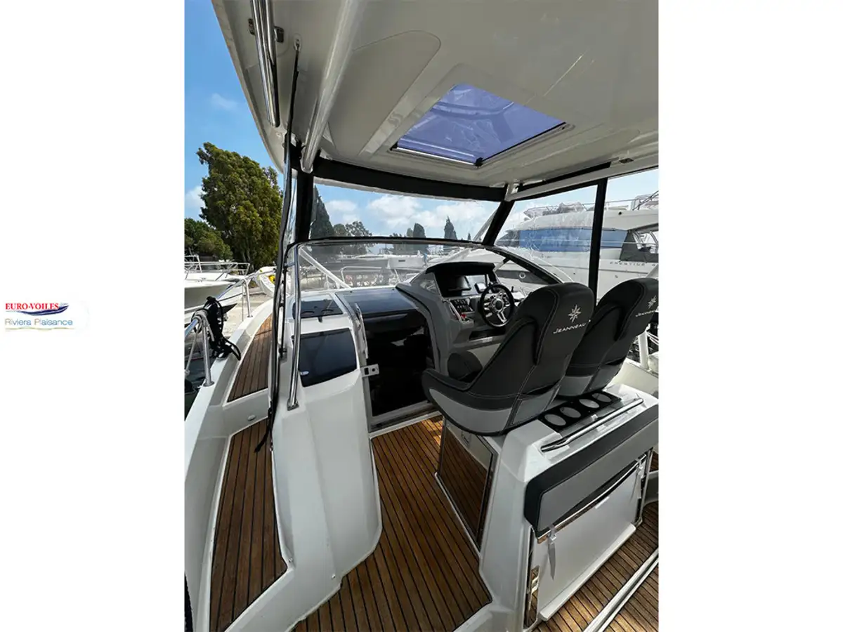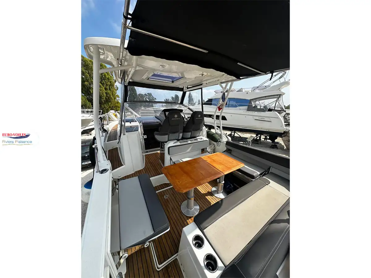 Version T-TOP avec casquette coulissante de cockpit et panneaux solaire, propulseur d'étrave avec batterie supplémentaire, flaps électrique, mat de ski, bain de soleil avant avec dossiers relevables, table de cockpit en teck télescopique transformable en bain de soleil arrière, banquette latérale repliable a bâbord, fond de cockpit lattées teck et passavant bâbord latte teck, GPS Sondeur GARMIN, TV et antenne dans le carré, complément de couchage, prise direct d'eau douce au quai, kit de housses de protection, paroi de douche + assise sur les toilettes, rideaux intérieurs, prise de quai avec chargeur 220V et prise dans la cabine, frigo de cockpit 49L et frigo intérieur 65L , plaque de cuisson gaz + évier dans le cockpit, plateformes de bain lattées teck, Pack FUSION AUDIO..
