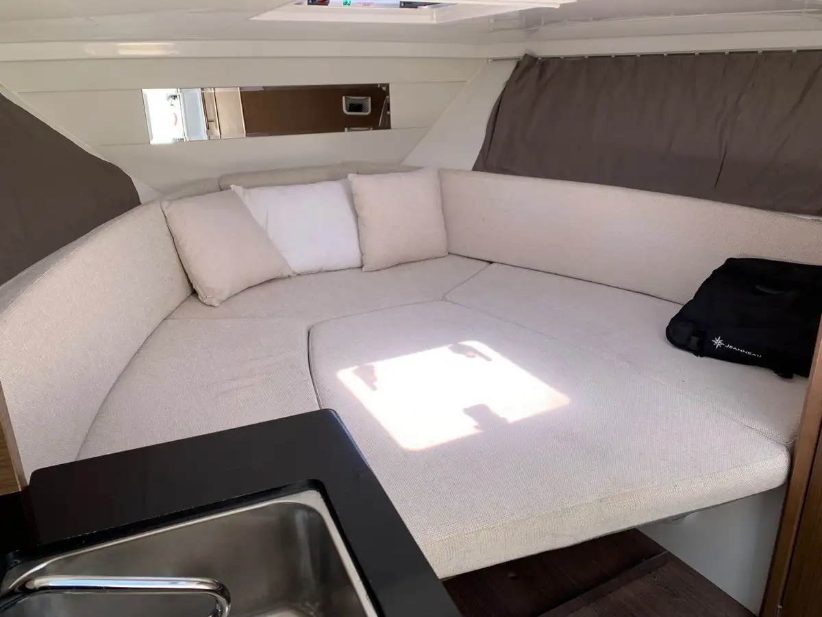 Parfait pour la petite croisière familiale, il bénéficie de larges fenêtres de coque permettant beaucoup de luminosité.