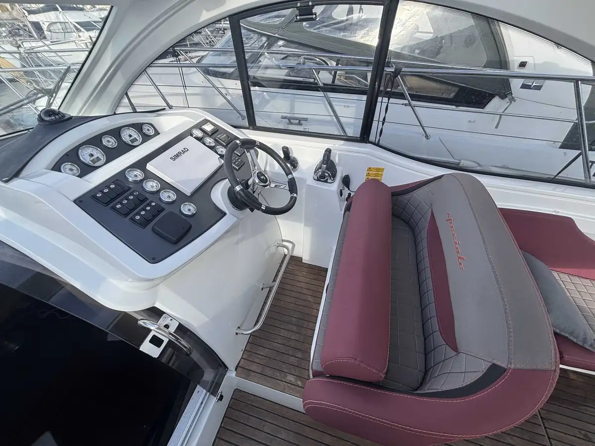 À jour de ses entretiens et révisions moteur, prêt à partir ! Motorisé en 2 x VOLVO D3 200 CV avec seulement 497 heures moteur et JOYSTICK, ce Gran Turismo 34 offre une navigation agréable et sécurisée.