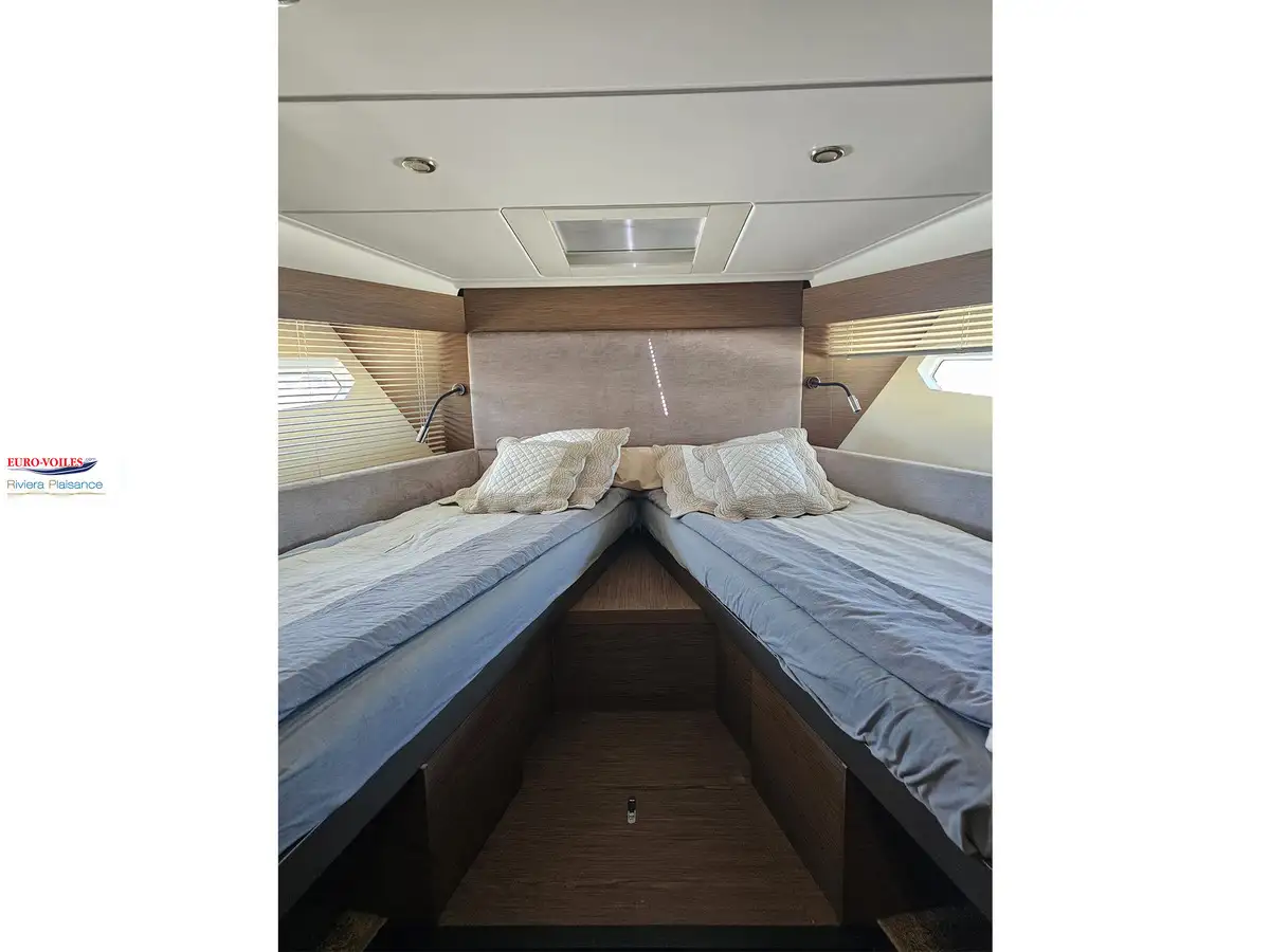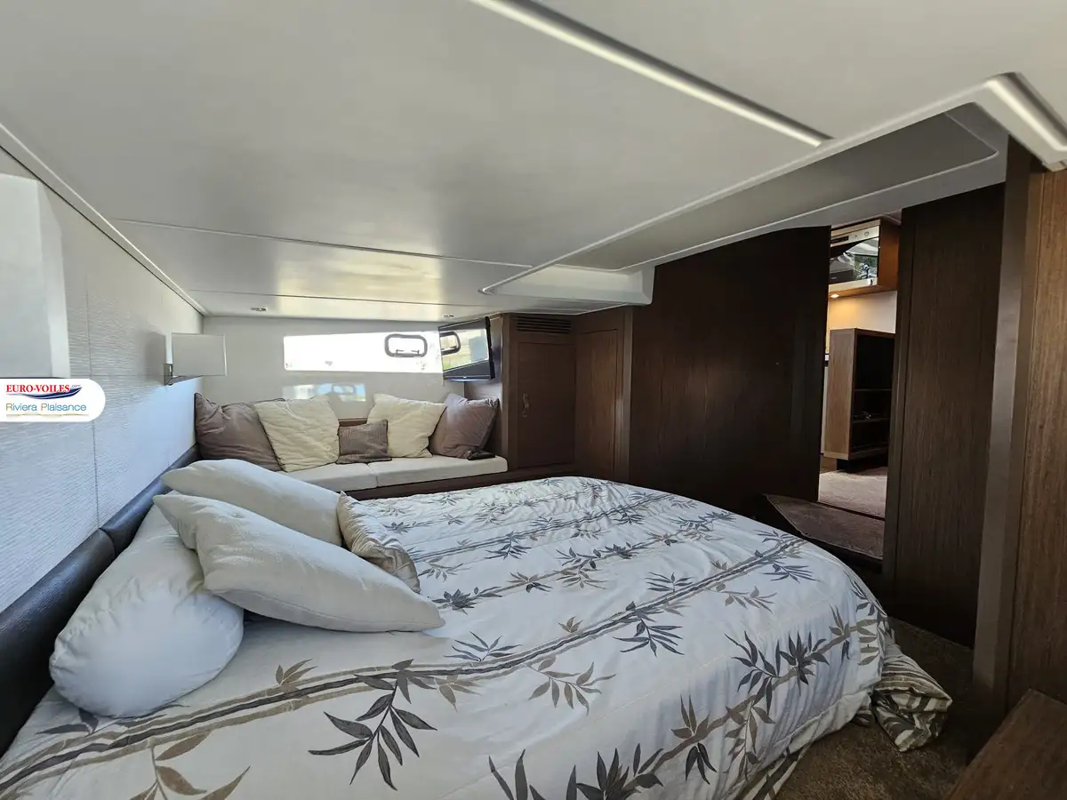 Avec une suite propriétaire double-vue sur mer s’étirant sur toute la largeur du bateau et une cabine VIP également dotée d’une salle d’eau avec douche séparée, le Gran Turismo 46 offre une qualité d’accueil exceptionnelle sur cette taille de vedette.