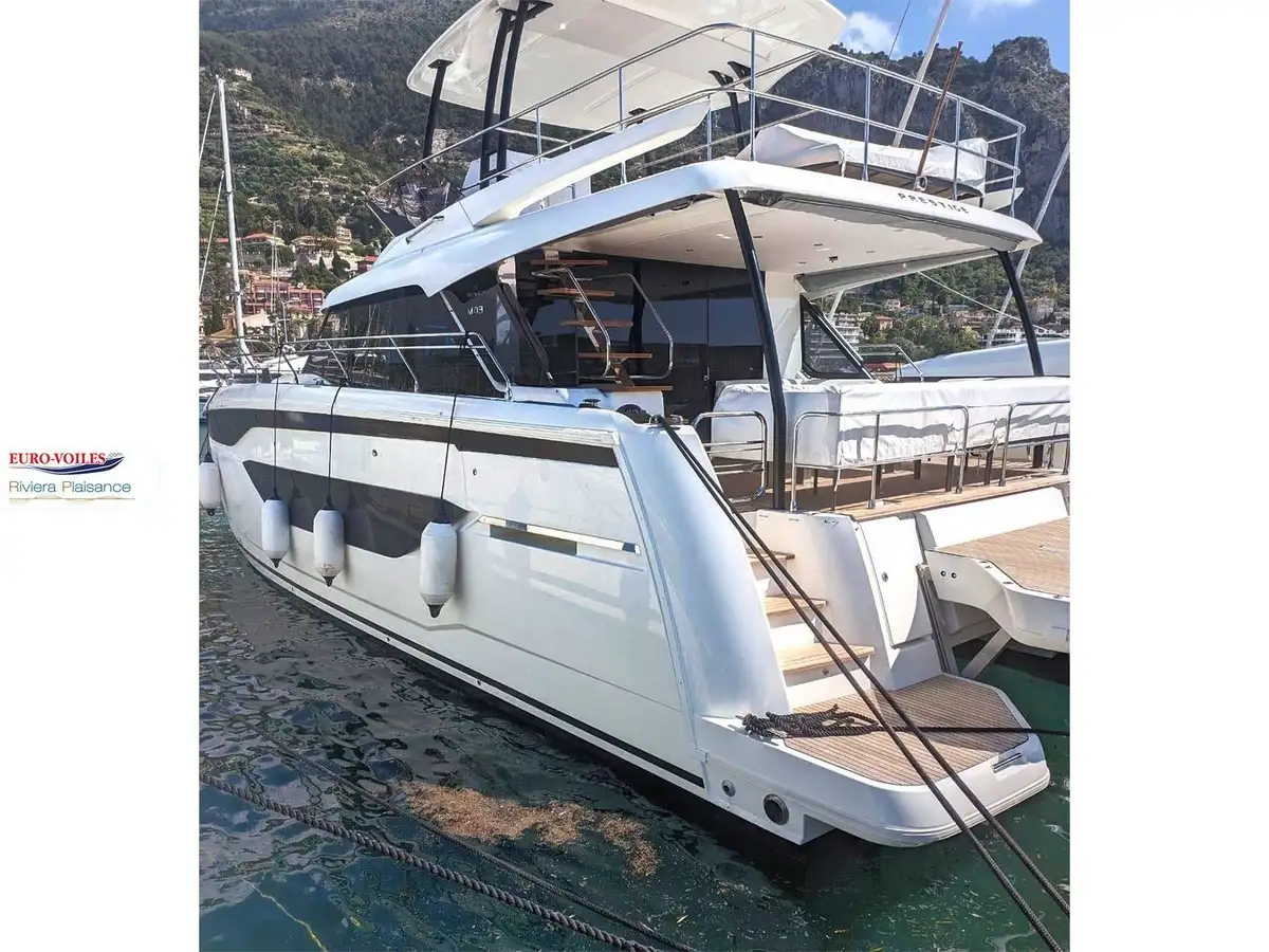 Équipé de 3 cabines et de 3 salles d'eau (dont une master pleine largeur de près de 20m²), ce bateau peut accueillir 6 convives dans un confort absolu. Évidemment, il est doté d'un groupe électrogène, de la climatisation et d'une plate-forme électrique.