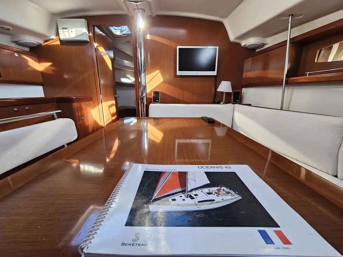 Un refit lustrage coque, joint de sail drive, révision moteur complète par notre chantier Euro-voiles fait de cet Océanis 43 la meilleure affaire sur le marché de très loin.