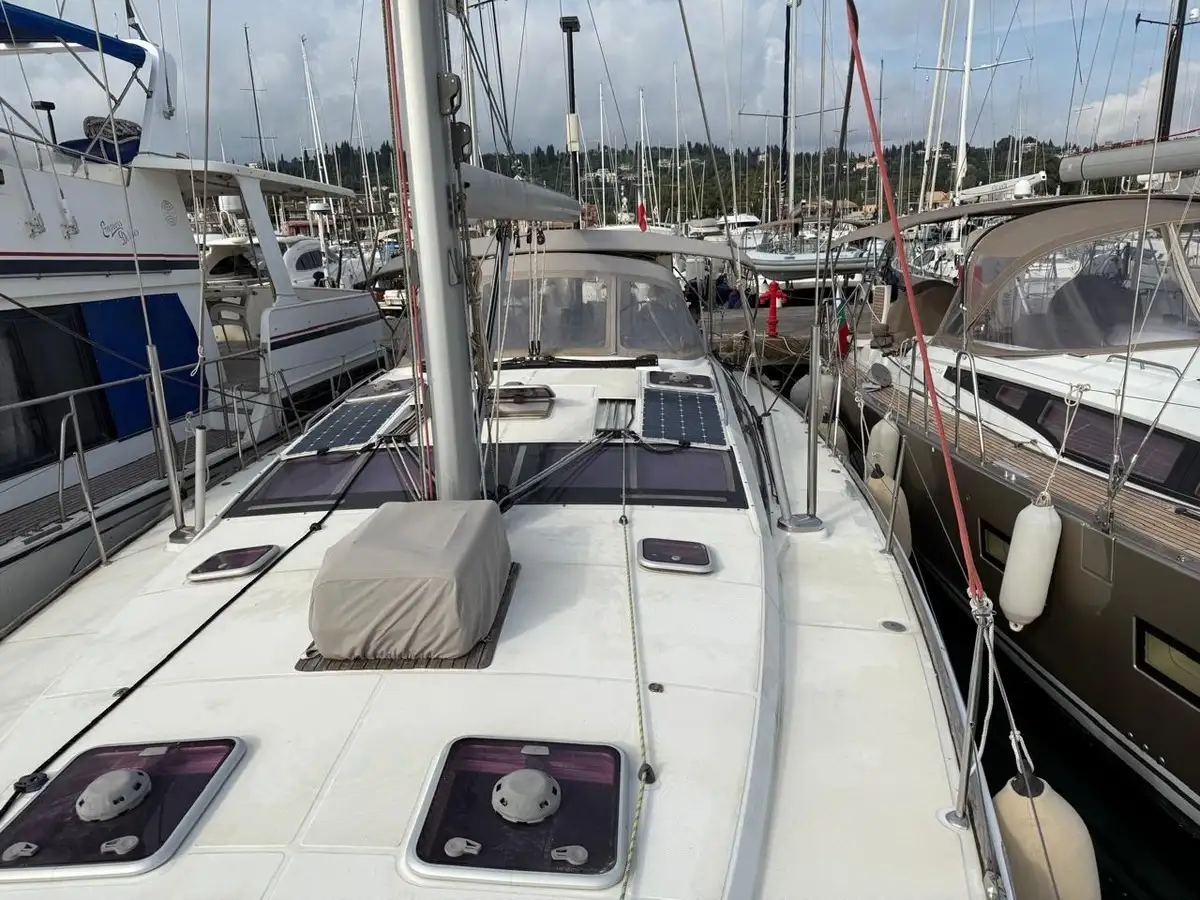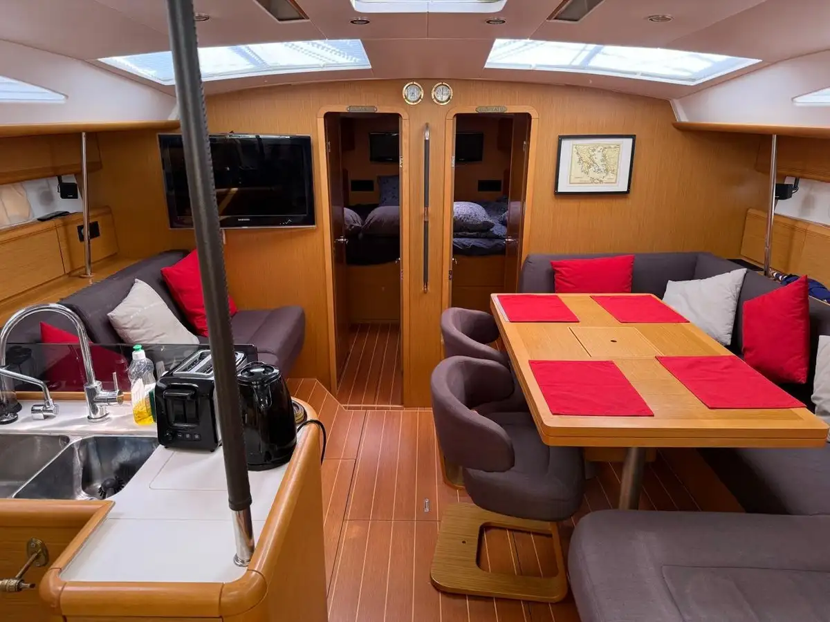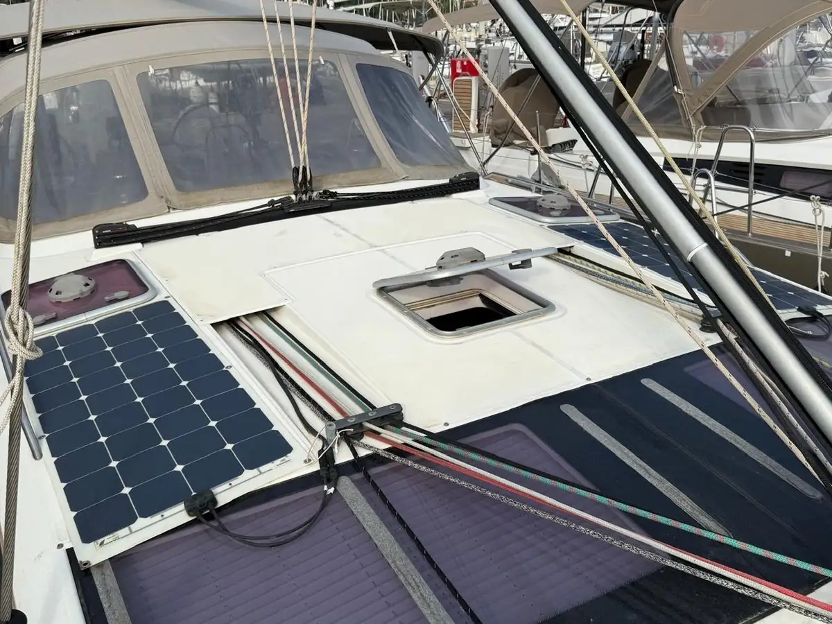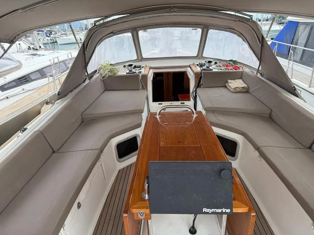 Le cockpit abrité par un bimini et une capote neufs invite à la détente. Que vous soyez au mouillage dans les îles grecques ou en navigation hauturière, ce voilier offre une véritable vie de yacht en toute simplicité.