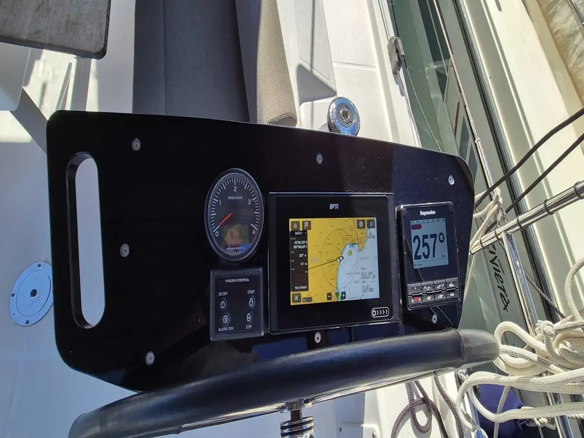 Parfaitement équipé pour naviguer en toute sérénité : voiles full batten, foc autovireur, code zéro sur emmagasineur, grill extérieur.