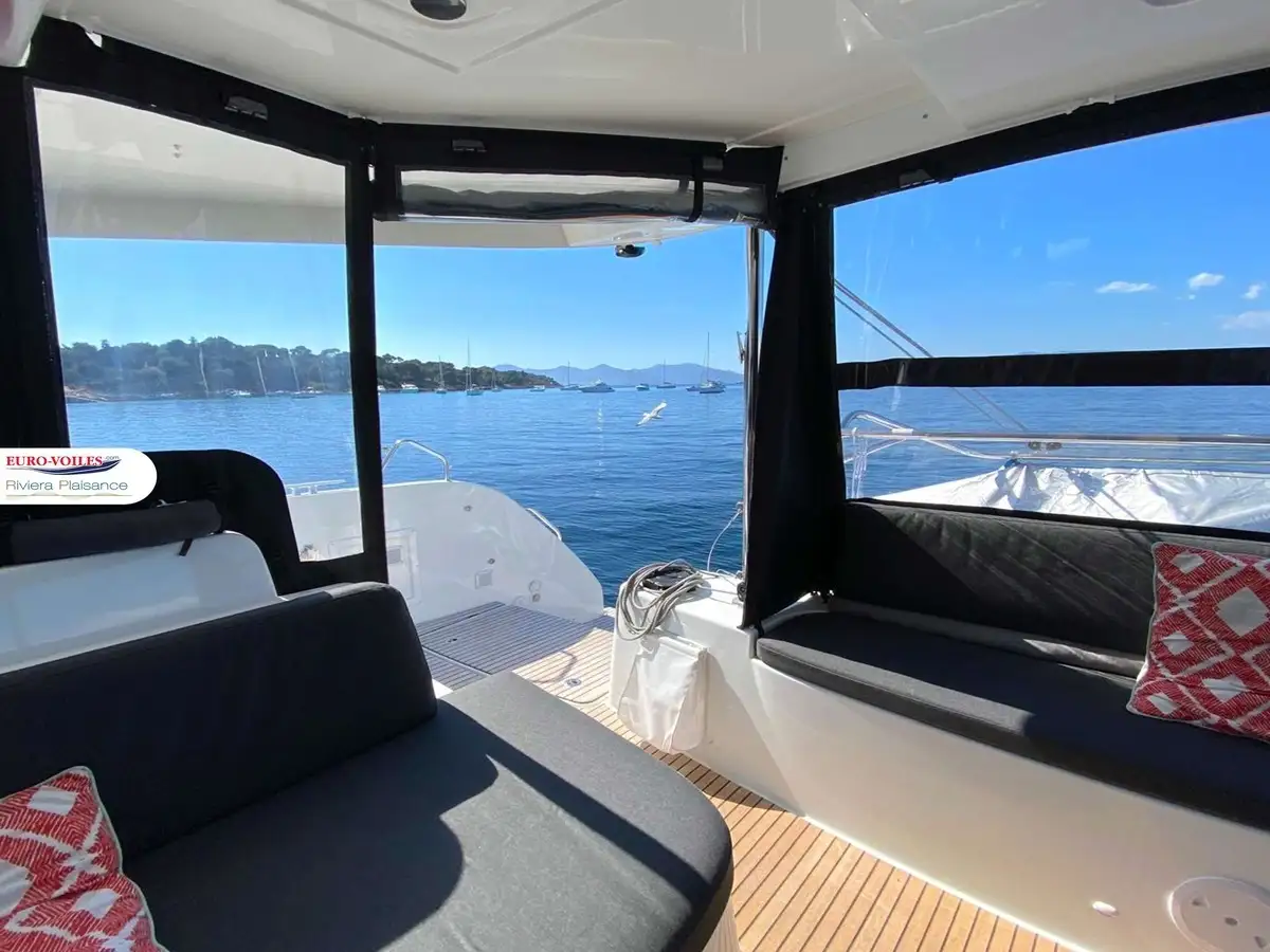 Son intérieur lumineux, ses finitions haut de gamme et son design raffiné offrent un cadre de vie exceptionnel, tandis que son cockpit spacieux et ses terrasses accueillantes vous permettent de profiter pleinement de la mer. Il dispose également d'un pack électronique Raymarine complet avec pilote automatique, pour une navigation précise et sécurisée.