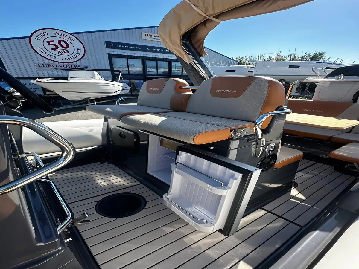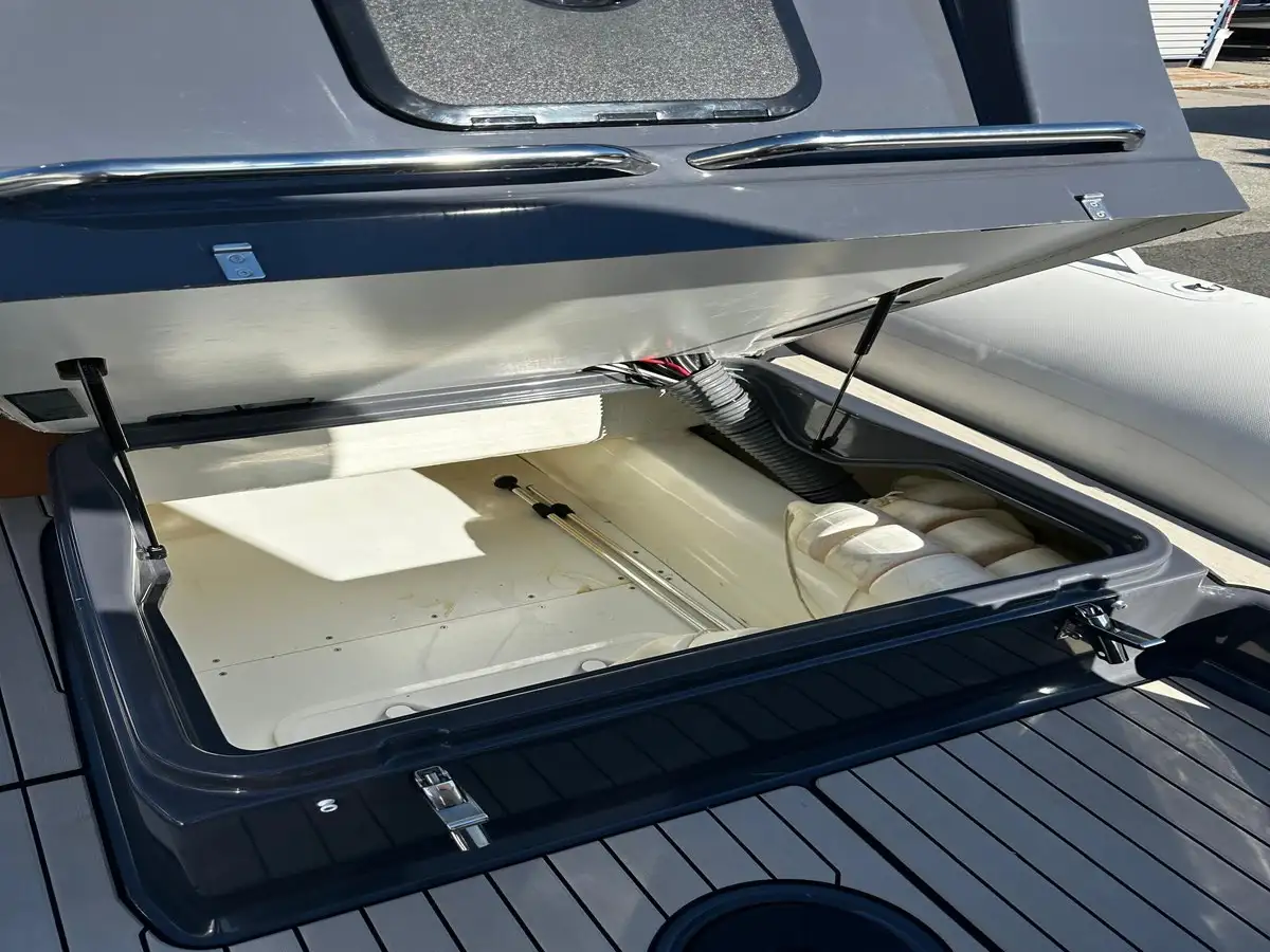 Dès les premiers instants, ce modèle séduit par la fluidité de ses espaces. Le cockpit arrière s’ouvre largement sur la mer, le flybridge panoramique devient un véritable lieu de vie, et la circulation à bord a été repensée pour rendre chaque déplacement plus naturel, plus simple, plus agréable.