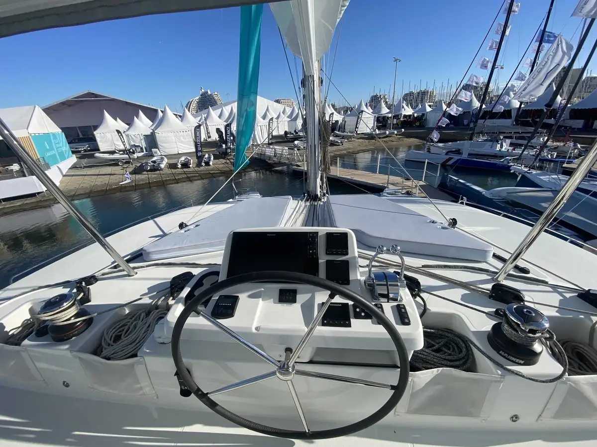 Le Lagoon 51 ICONIC conserve ses atouts clés, notamment ses deux accès menant au flybridge, qui assurent une circulation fluide à bord, une sécurité renforcée et une vue imprenable à 360° depuis l’espace de pilotage et de détente surélevé.