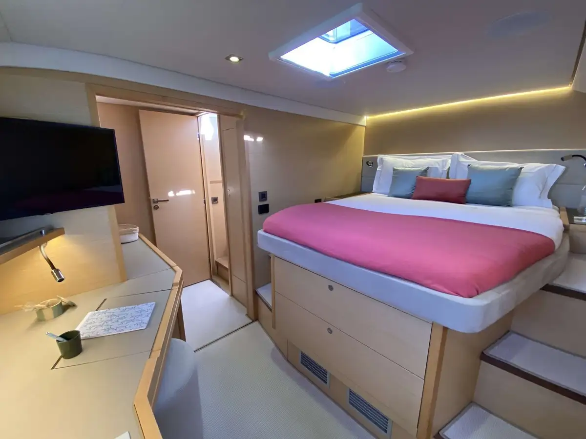 Construit en 2012, ce 620 a été entièrement repensé en 2025, par les mains mêmes du chantier. Tout a été revu. Chaque système, chaque ligne, chaque matériau a été restauré, modernisé, sublimé. Deux moteurs Yanmar neufs, une voilure complète en hydranet, un équipement électrique dernière génération, une domotique connectée Seanapps®, un intérieur redessiné, lumineux, raffiné… Rien n’a été laissé au hasard.