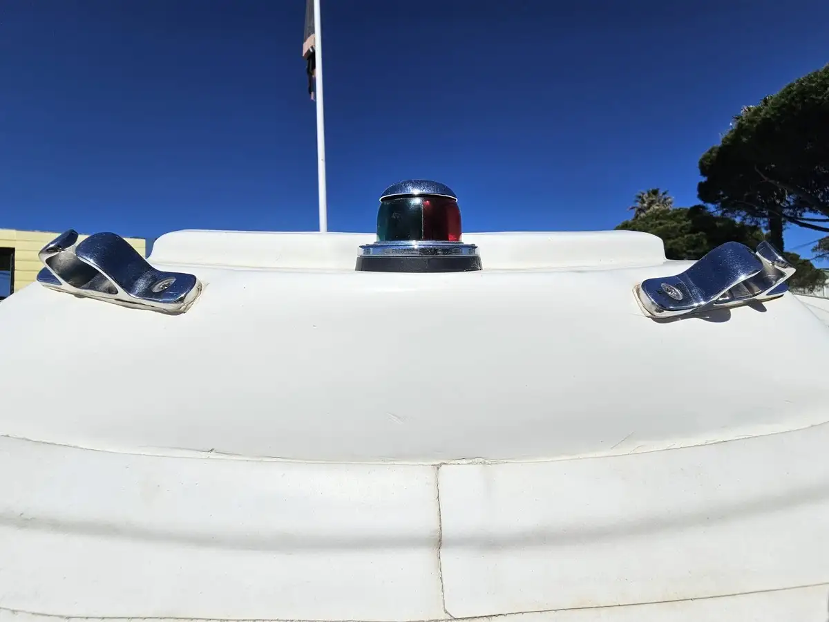 Équipements inclus : Console avec volant, feux de navigation, cadènes de levage, pompe de cale, sellerie complète