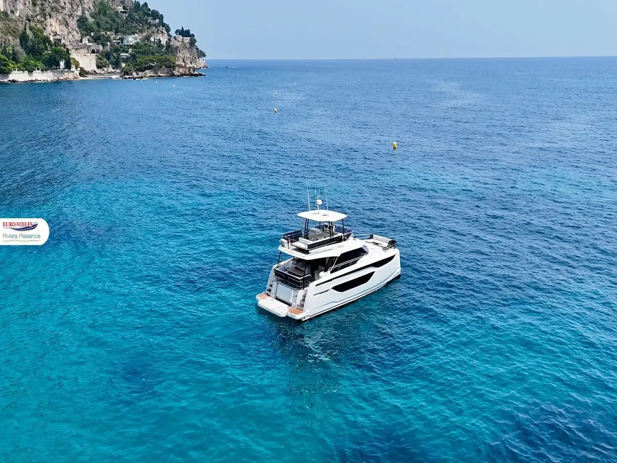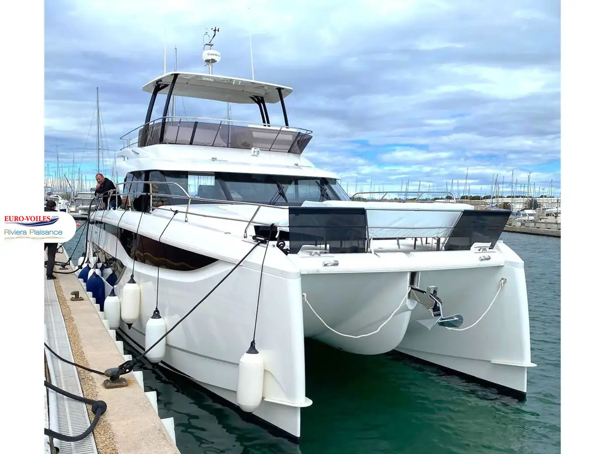 Équipé de 3 cabines et de 3 salles d'eau (dont une master pleine largeur de près de 20m²), ce bateau peut accueillir 6 convives dans un confort absolu. Évidemment, il est doté d'un groupe électrogène, de la climatisation et d'une plate-forme électrique.