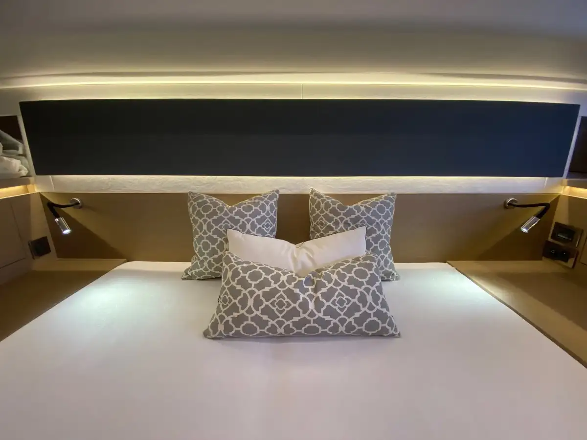 Version 2 cabines 2 salles d'eau, chêne grisé. Très bien équipée pour la croisière : joystick cummins, groupe, clim tropicale, passerelle hydraulique, grande plateforme de bain, radar, caméra de recul, pilote auto, propulseur d'étrave, GPS sondeur, VHF AIS, compteur de chaine, cuisine de fly, grand bain de soleil avant et sur le fly, rideaux sunworker, fermeture arrière en strataglass et sunworker.. inventaire complet sur demande. Votre unique opportunité de naviguer à bord d'une Prestige 420 dès Maintenant. !