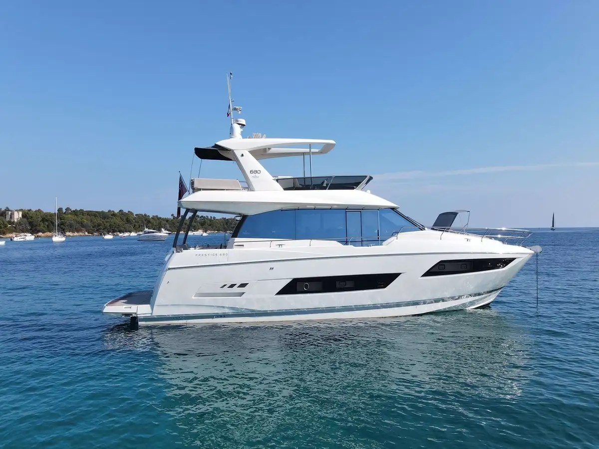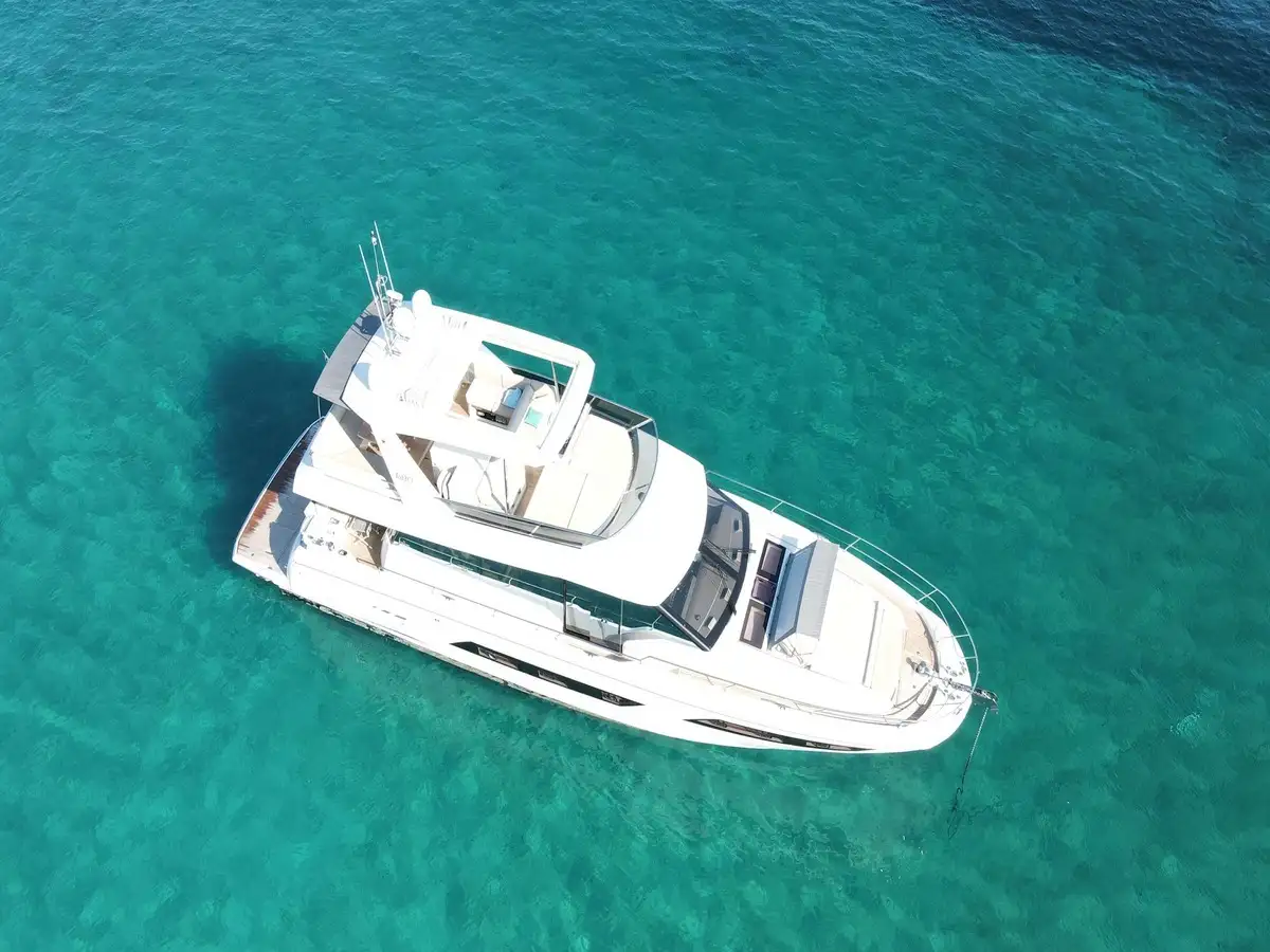 Ce somptueux yacht de luxe bénéficie d'un aménagement intérieur digne d'un 70 pieds, de part sa conception et du choix des matériaux. Ce bateau de propriétaire utilisé dans un cadre exclusivement privé, propose un équipement complet dont la liste détaillé est disponible sur demande. Ancre virtuelle volvo, groupe électrogène, dessalinisateur ou encore la plateforme hydraulique font partie des options que vous découvrirez sur place lors d'une visite ou lors d'un live vidéo. Son état cosmétique et son aspect technique irréprochable font de lui une opportunité exceptionnelle pour vivre, partager et naviguer en famille à bord sereinement ! L'immensité de son fly, protégé par son hard-top ouvrant, équipé d'une cuisine est idéal pour un dîner au coucher de soleil.
