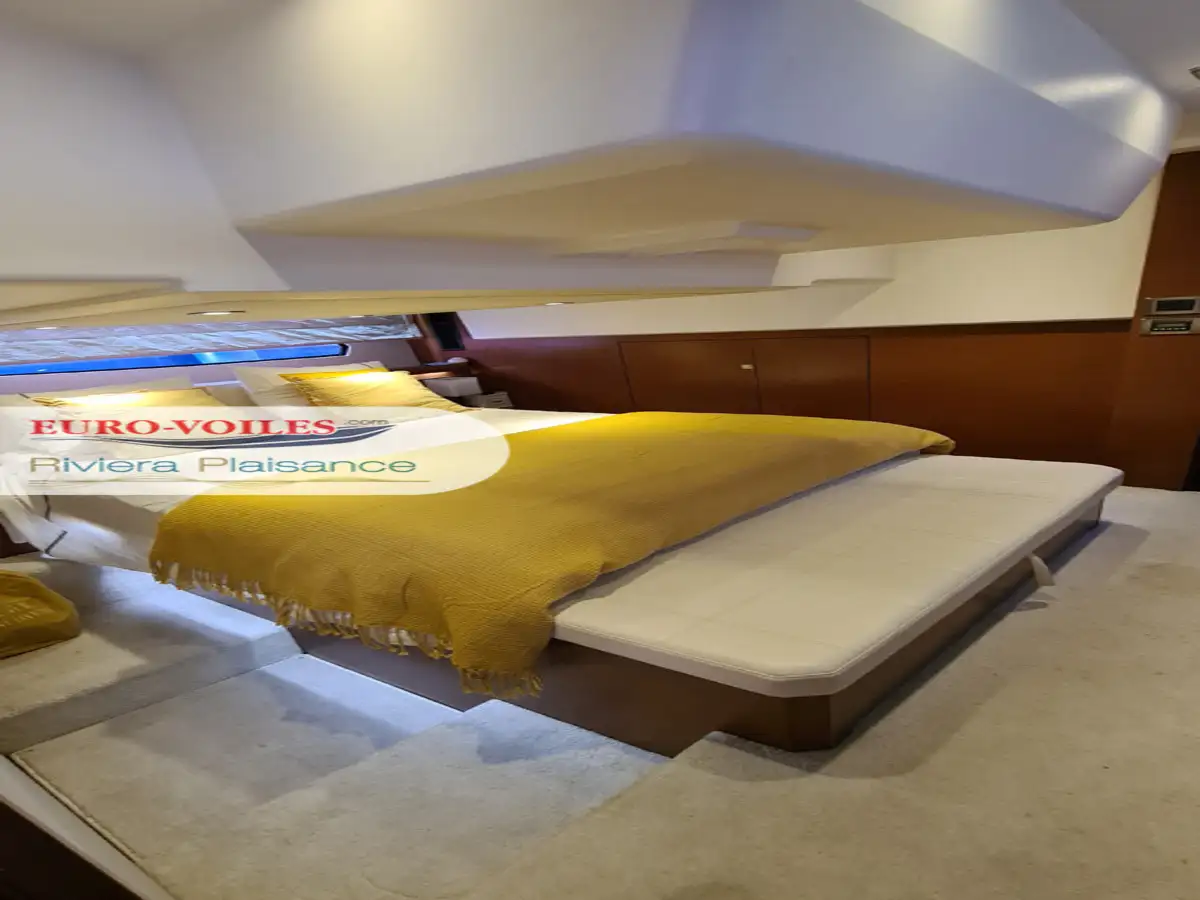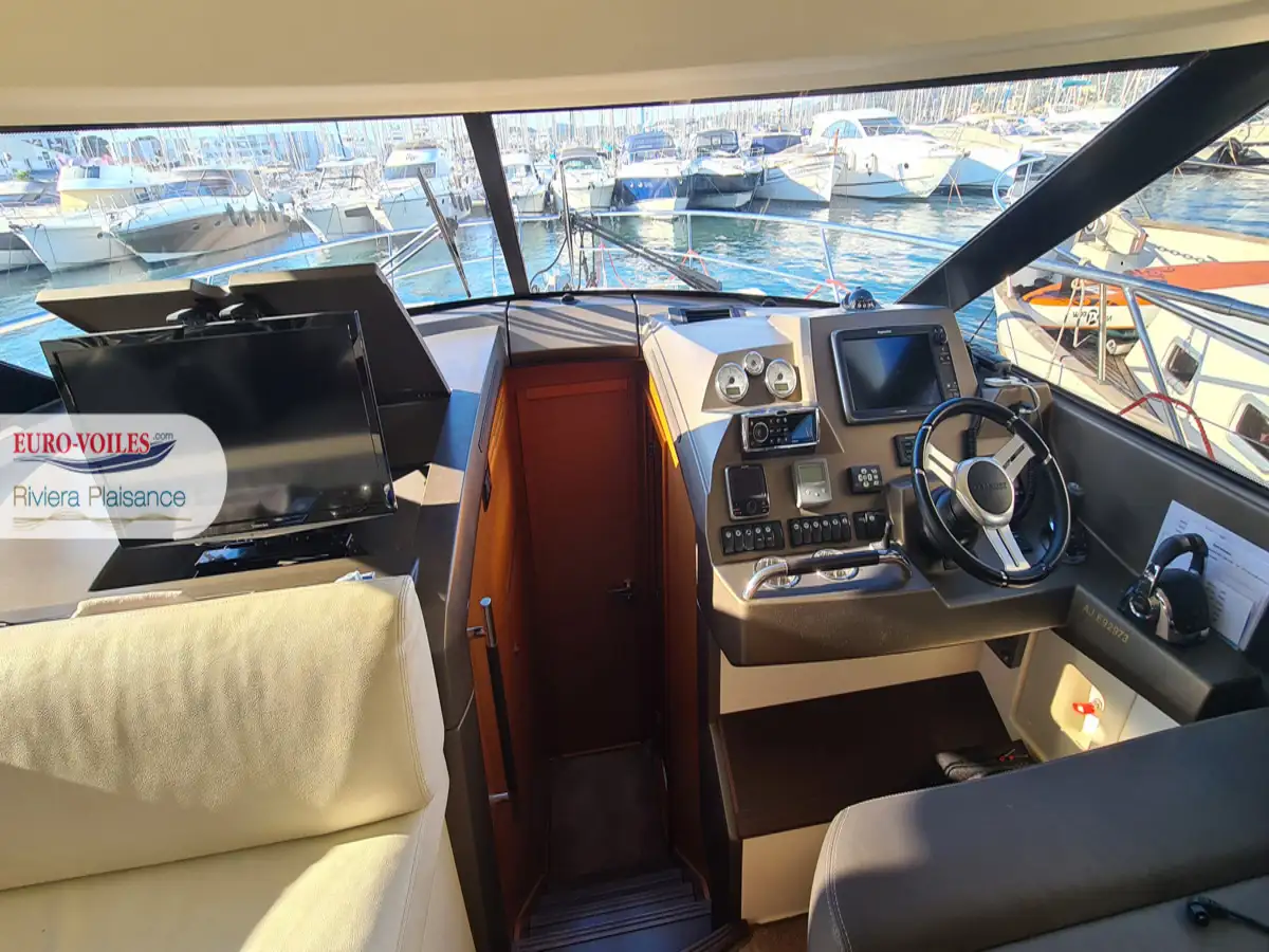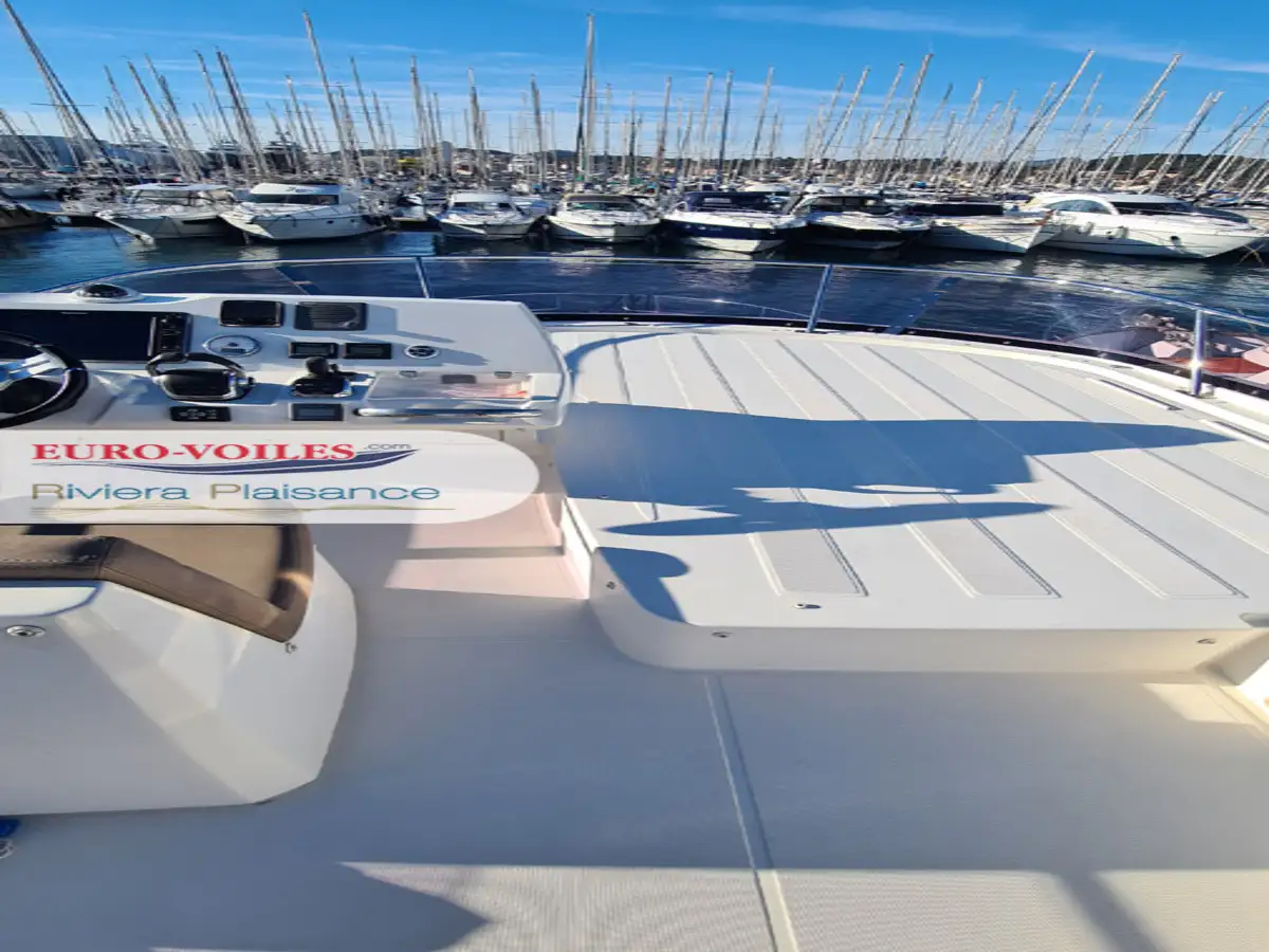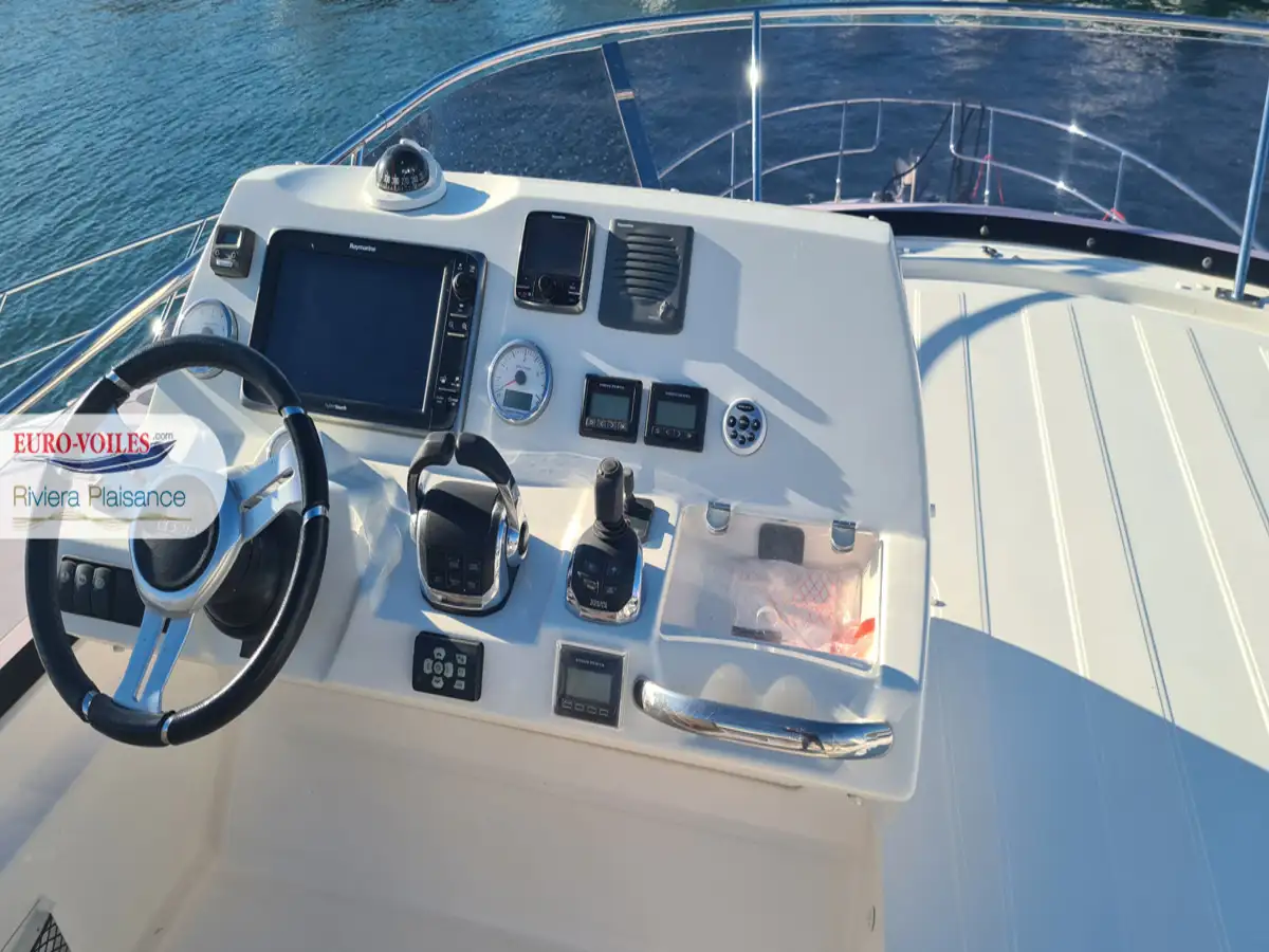 La motorisation IPS garantit une prise en main intuitive et une manœuvrabilité remarquable. Trois joysticks de commande, complétés par un propulseur d’étrave, facilitent toutes les manœuvres, même dans les ports les plus étroits. Pour des croisières sereines et confortables, cette unité est équipée d’un générateur, de la climatisation, du système Easy Connect, ainsi que de doubles pré-filtres gasoil et eau douce.