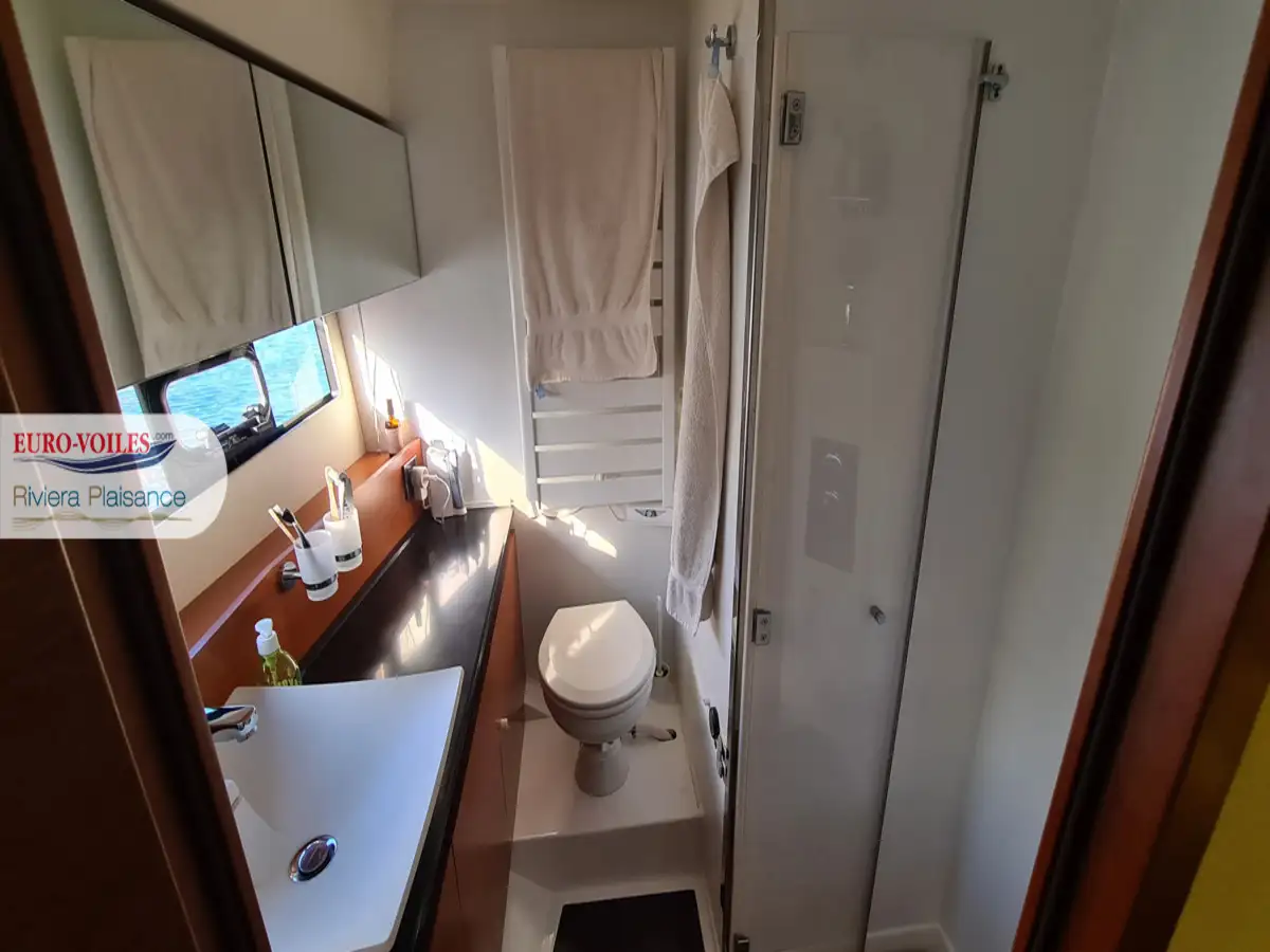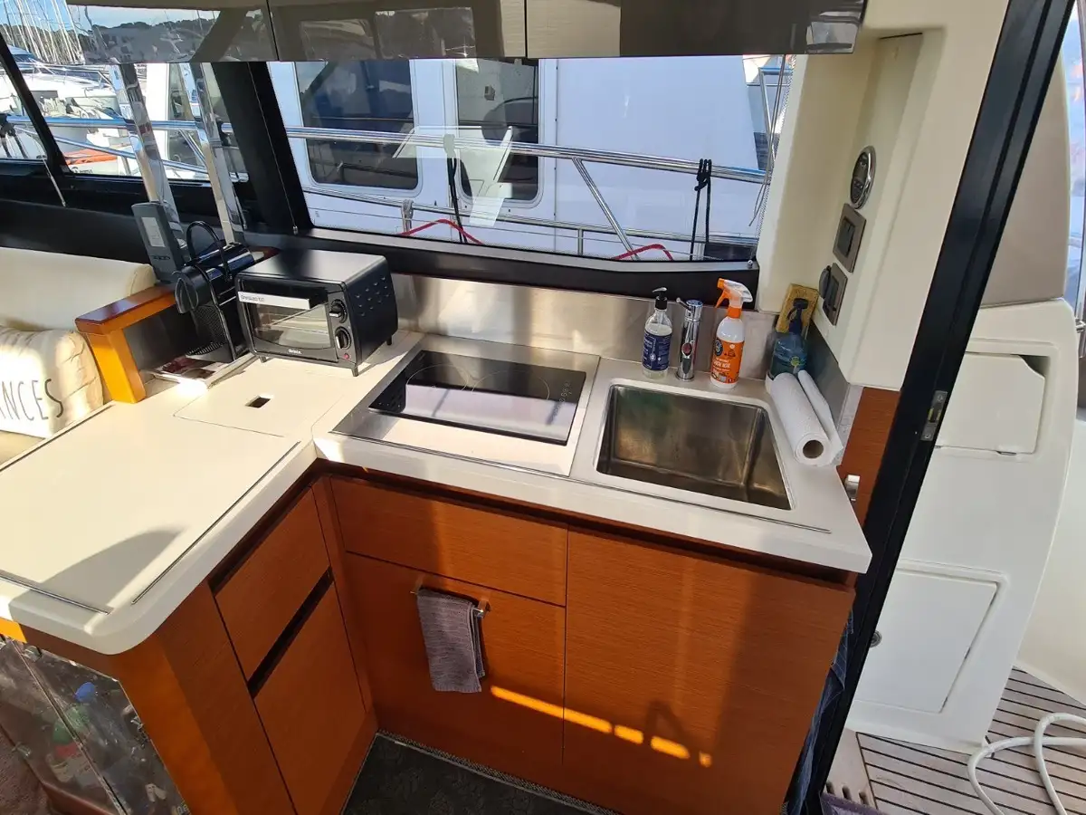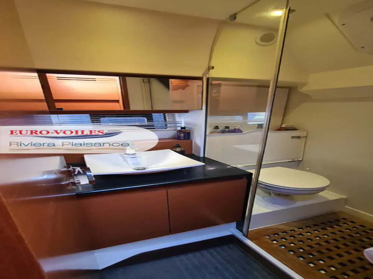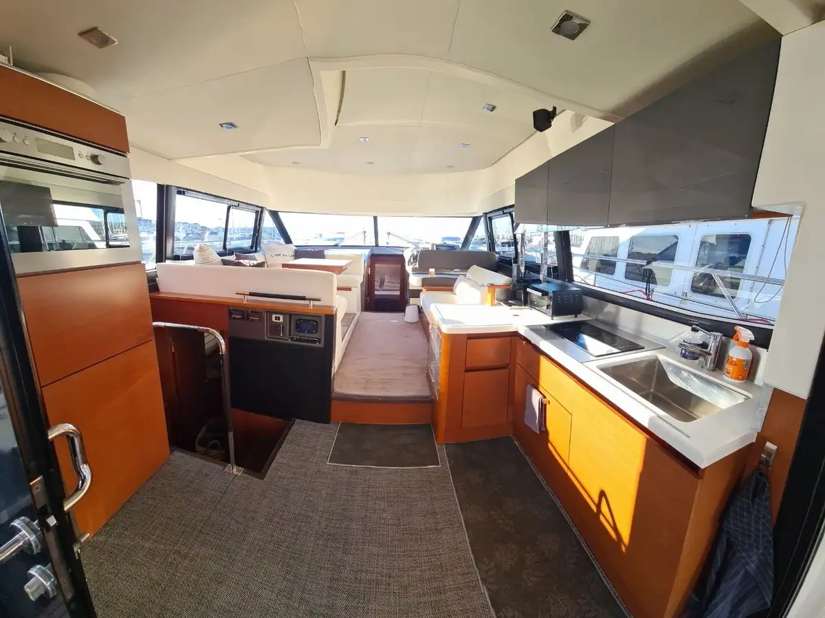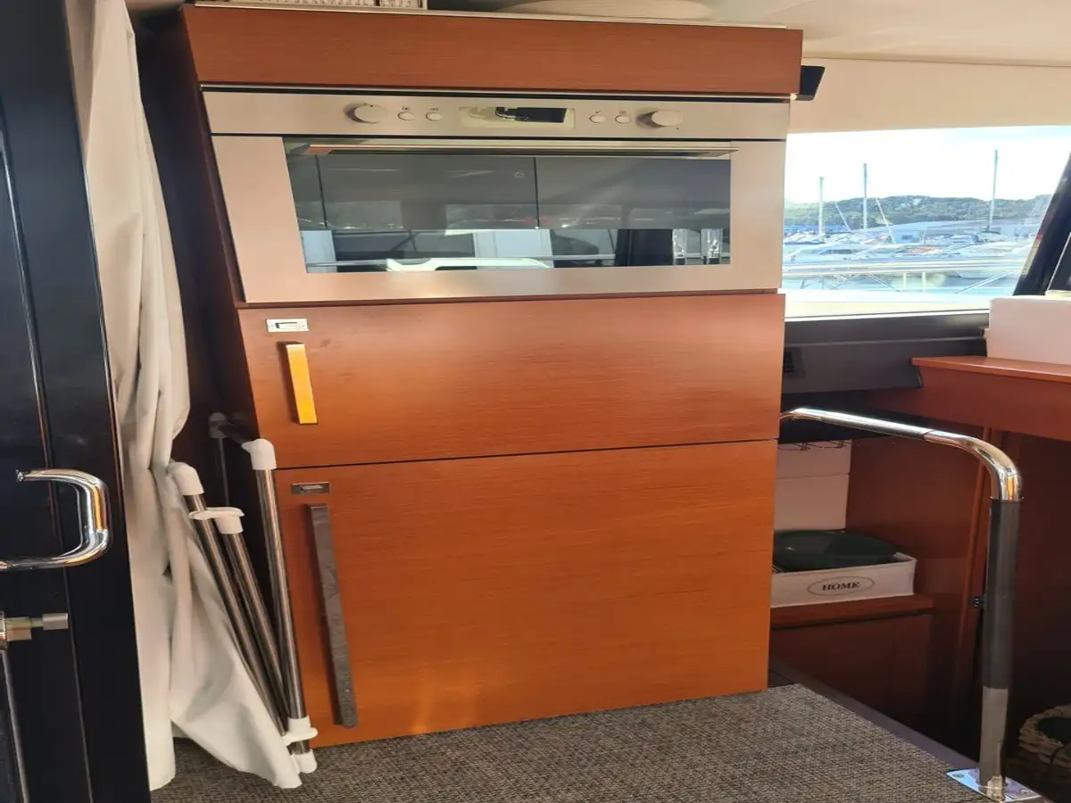 La motorisation IPS garantit une prise en main intuitive et une manœuvrabilité remarquable. Trois joysticks de commande, complétés par un propulseur d’étrave, facilitent toutes les manœuvres, même dans les ports les plus étroits. Pour des croisières sereines et confortables, cette unité est équipée d’un générateur, de la climatisation, du système Easy Connect, ainsi que de doubles pré-filtres gasoil et eau douce.
