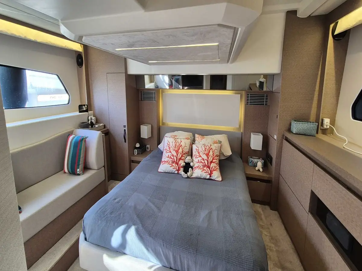 La cabine propriétaire centrale offre un volume exceptionnel, une belle luminosité et de nombreux rangements, idéale pour un programme propriétaire.