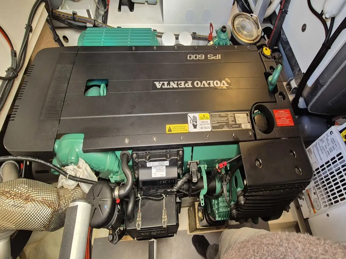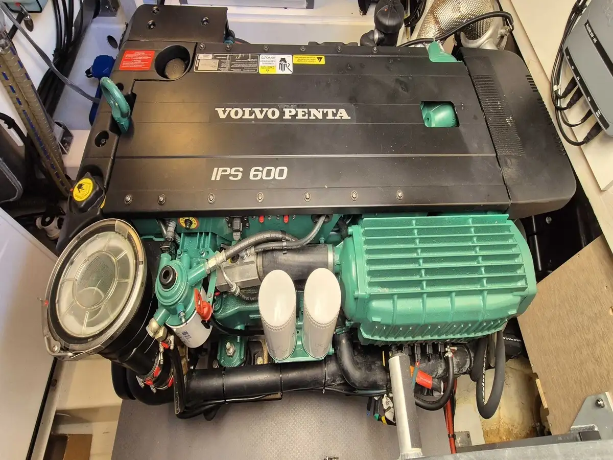 Motorisation 2 x Volvo IPS 600 avec joystick – seulement 435 heures moteur – offrant performances, sécurité et une manœuvrabilité optimale.