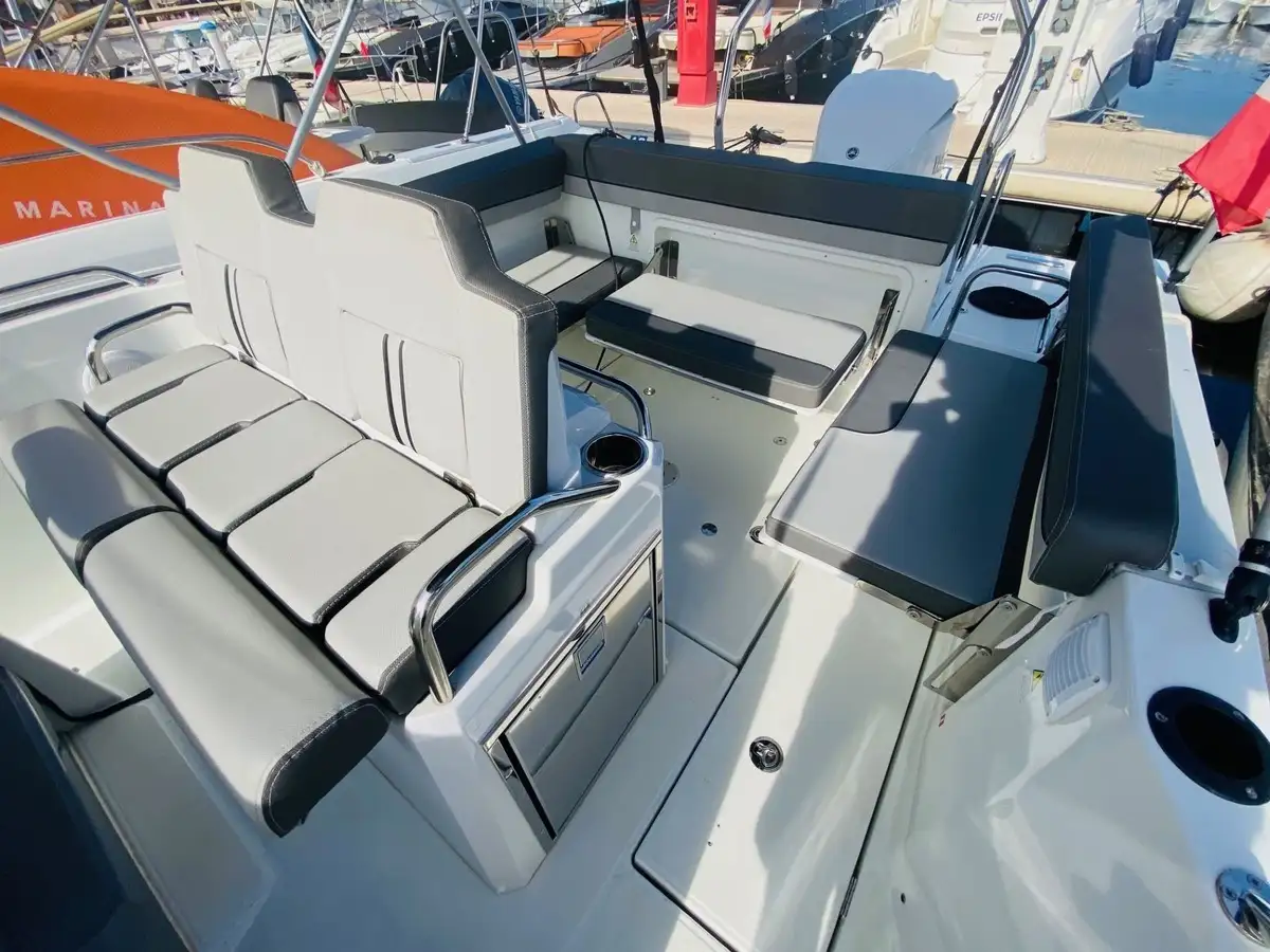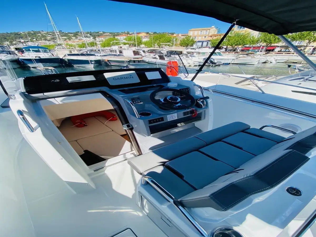 Bateau dans un etat neuf, plateforme d’etrave avec echelle, GPS sondeur garmin 92 sv uhd, Bimini Alu Graphite, mat de ski, poste audio fusion, bain de soleil avant, wc + eau noires, banquettes latérales + dossier luxe, frigo extérieur + batterie, Housse de sièges et de console.