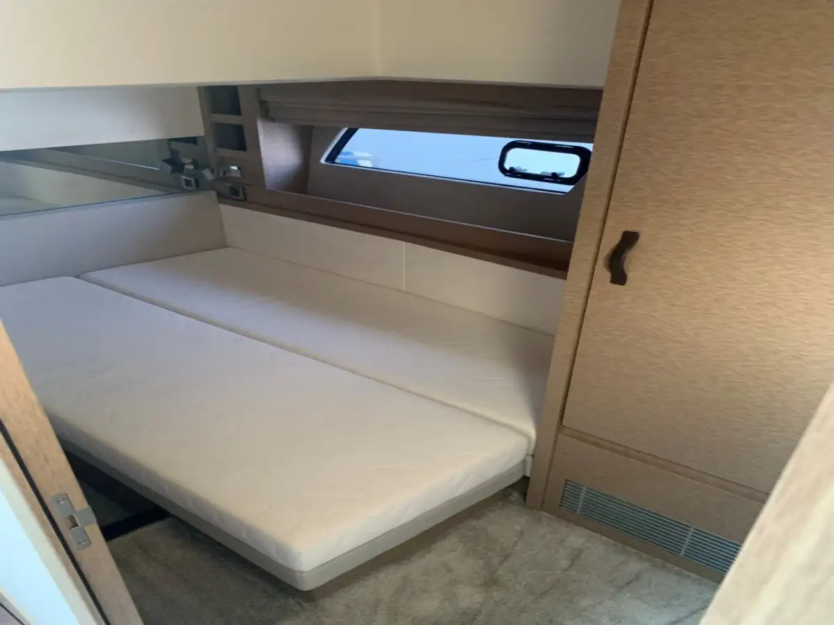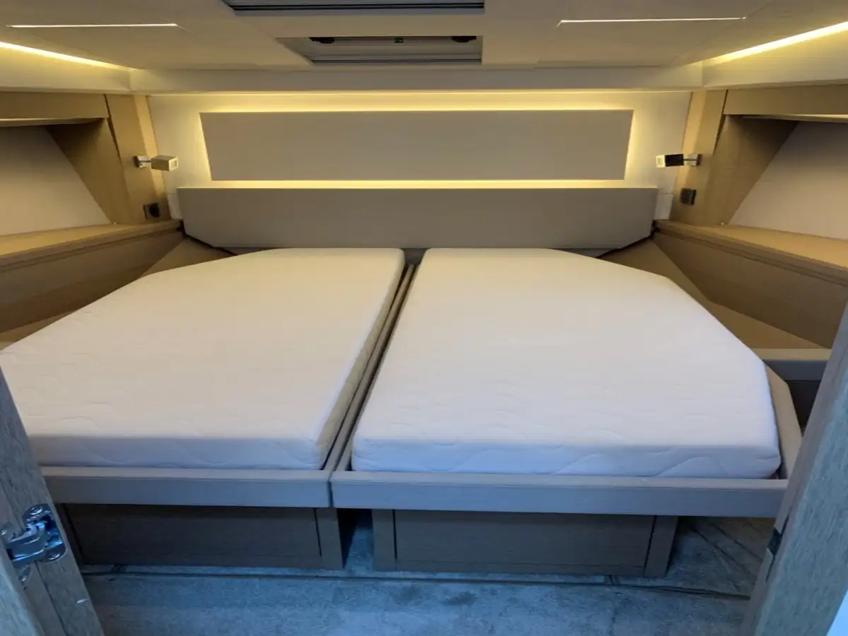 Côté équipement, la différence se ressent en mer comme au mouillage. Le stabilisateur SEAKEEPER transforme le confort à bord, en navigation comme à l’arrêt. Le groupe électrogène 11 kW apporte une vraie autonomie, la climatisation réversible et le convertisseur complète l’ensemble pour une vie à bord douce et simple.