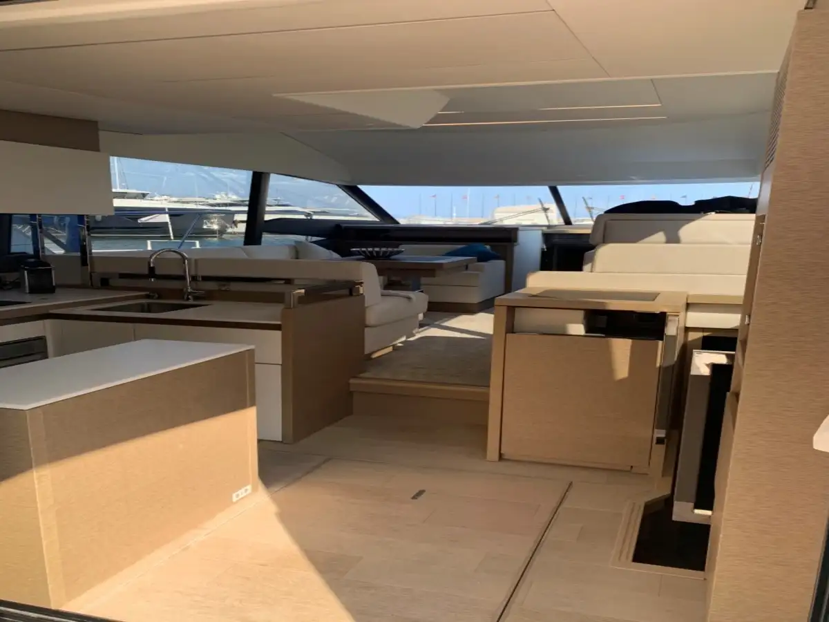 Le PRESTIGE 520 est reconnu pour son équilibre, ses volumes et sa lumière: un yacht pensé pour la croisière, avec une cabine propriétaire avec accès privée à couper le souffle, une circulation naturelle à bord et cette signature Prestige qui privilégie le confort, la lumière et la vie dehors comme dedans.