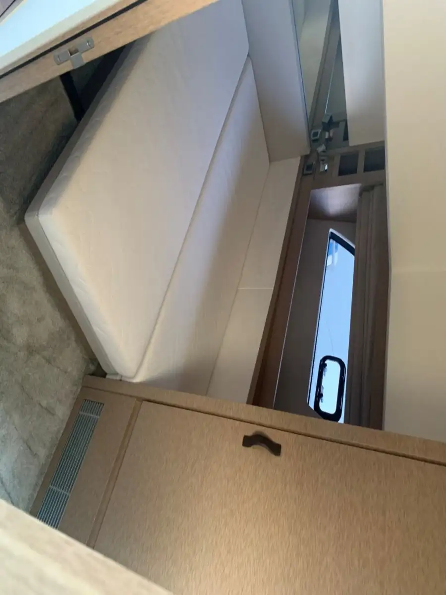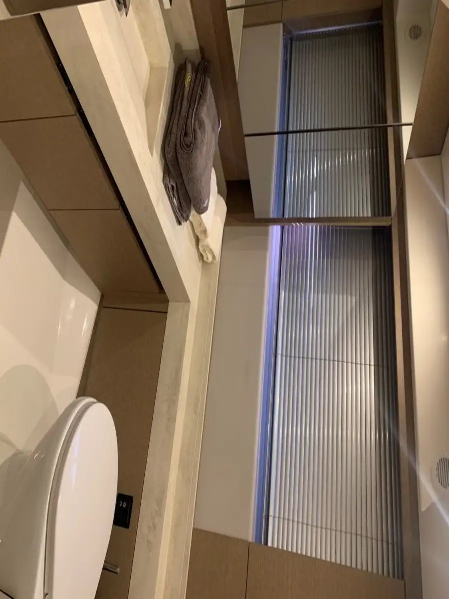 L’aménagement intérieur, baigné de lumière grâce aux immenses vitrages latéraux, offre une véritable sensation de villa flottante — chic, chaleureuse et fonctionnelle. sans parler de sa cabine propriétaire …