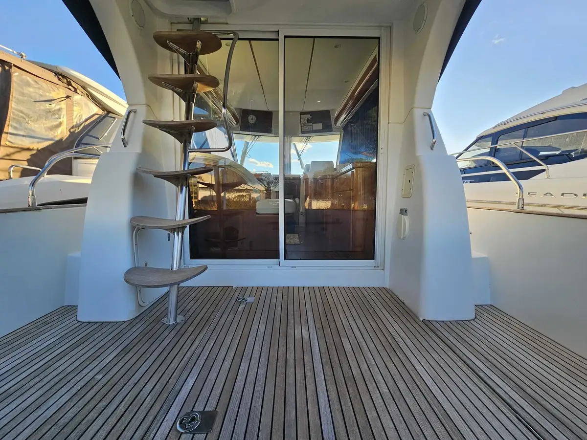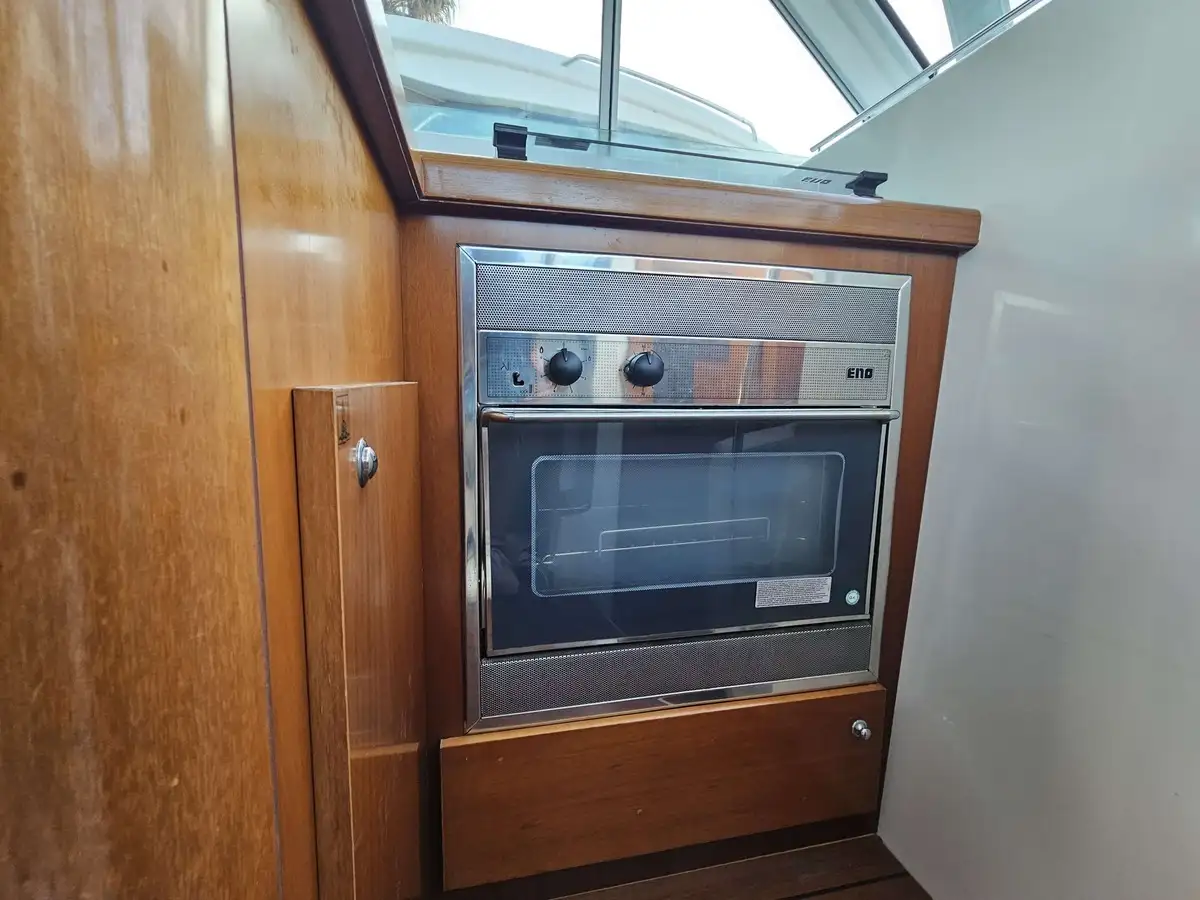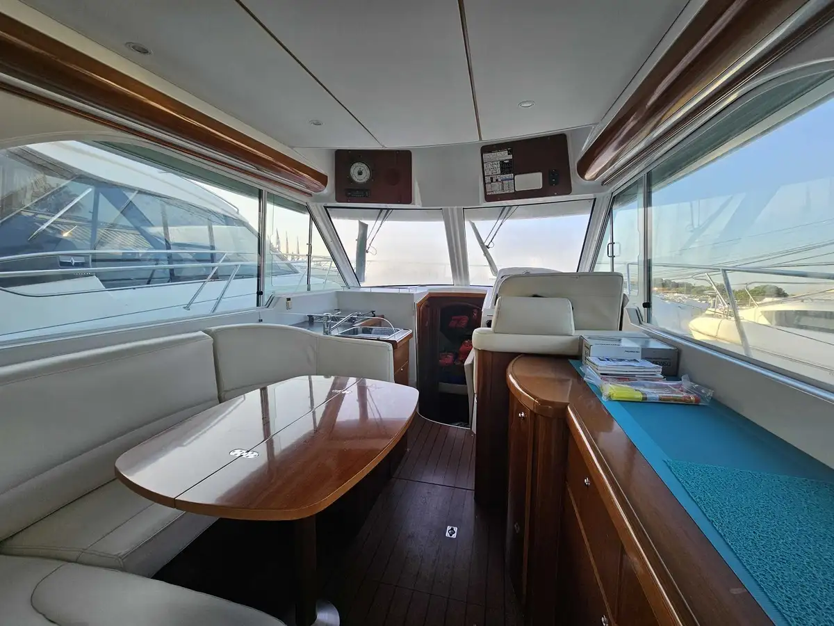User-friendly flybridge: A real outdoor cockpit with bench seat and sun deck, offering perfect visibility for maneuvering and sunny cruises.