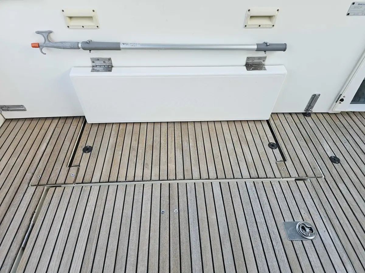 Variable Geometry Cockpit: The major advantage of this model is its sliding transom (exclusive to Bénéteau), which allows you to enlarge the cockpit space at anchor or to prioritize the swim platform for swimming.