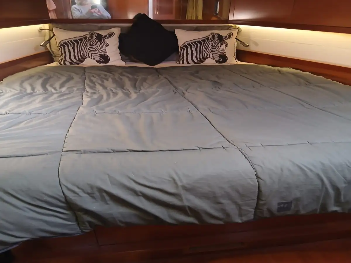 Aménagement : 3 cabines doubles, 2 salles de bain (WC électriques eau de mer/douce), et carré transformable.