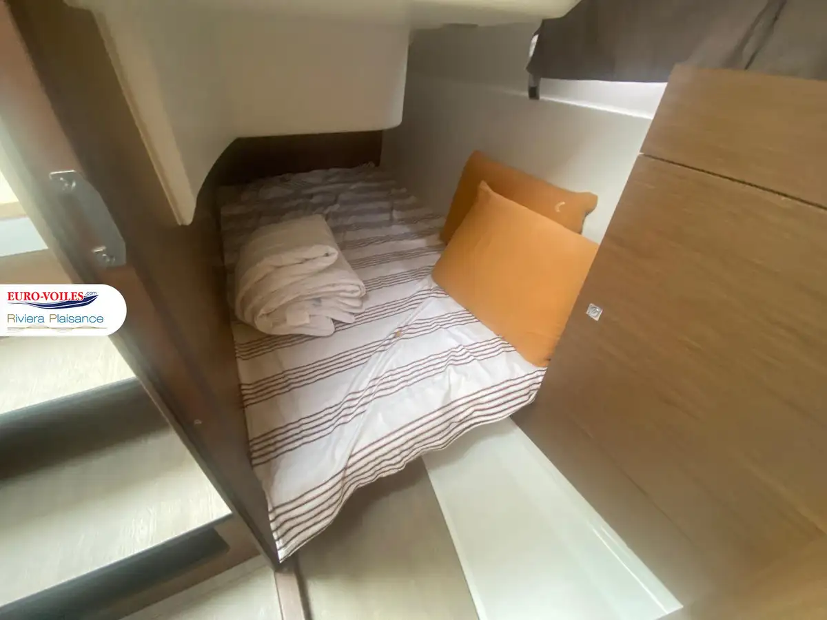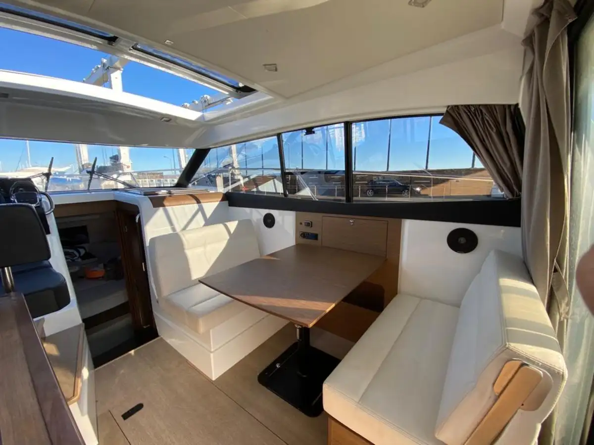 Offering plenty of comfort with an electric sliding roof, forced air heating, a bow thruster, electric trim tabs, electric curtains, teak cockpit, cockpit lighting, VHF, GPS, depth sounder, Fusion audio system, electric toilet, direct freshwater connection at the dock, convertible cockpit bench into a sunbed, and cockpit awning.
