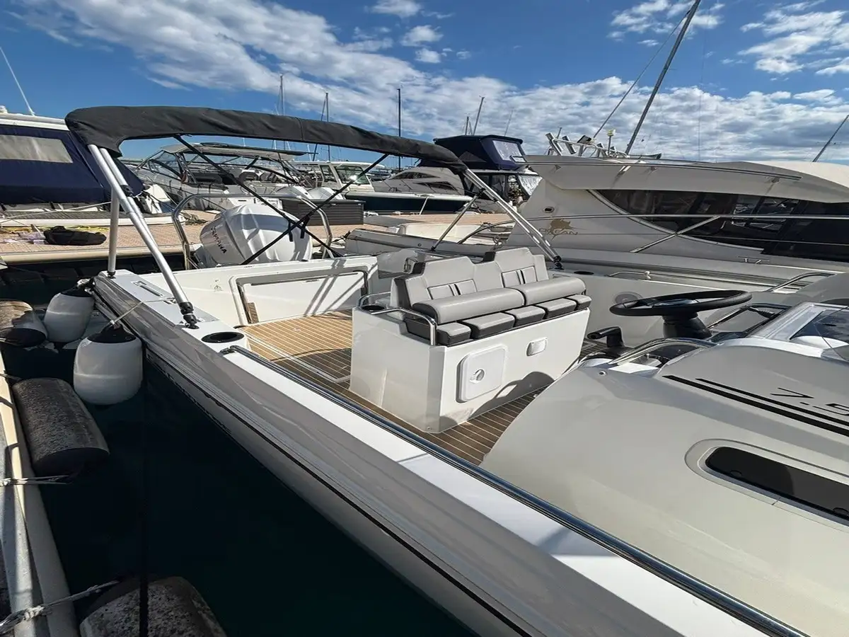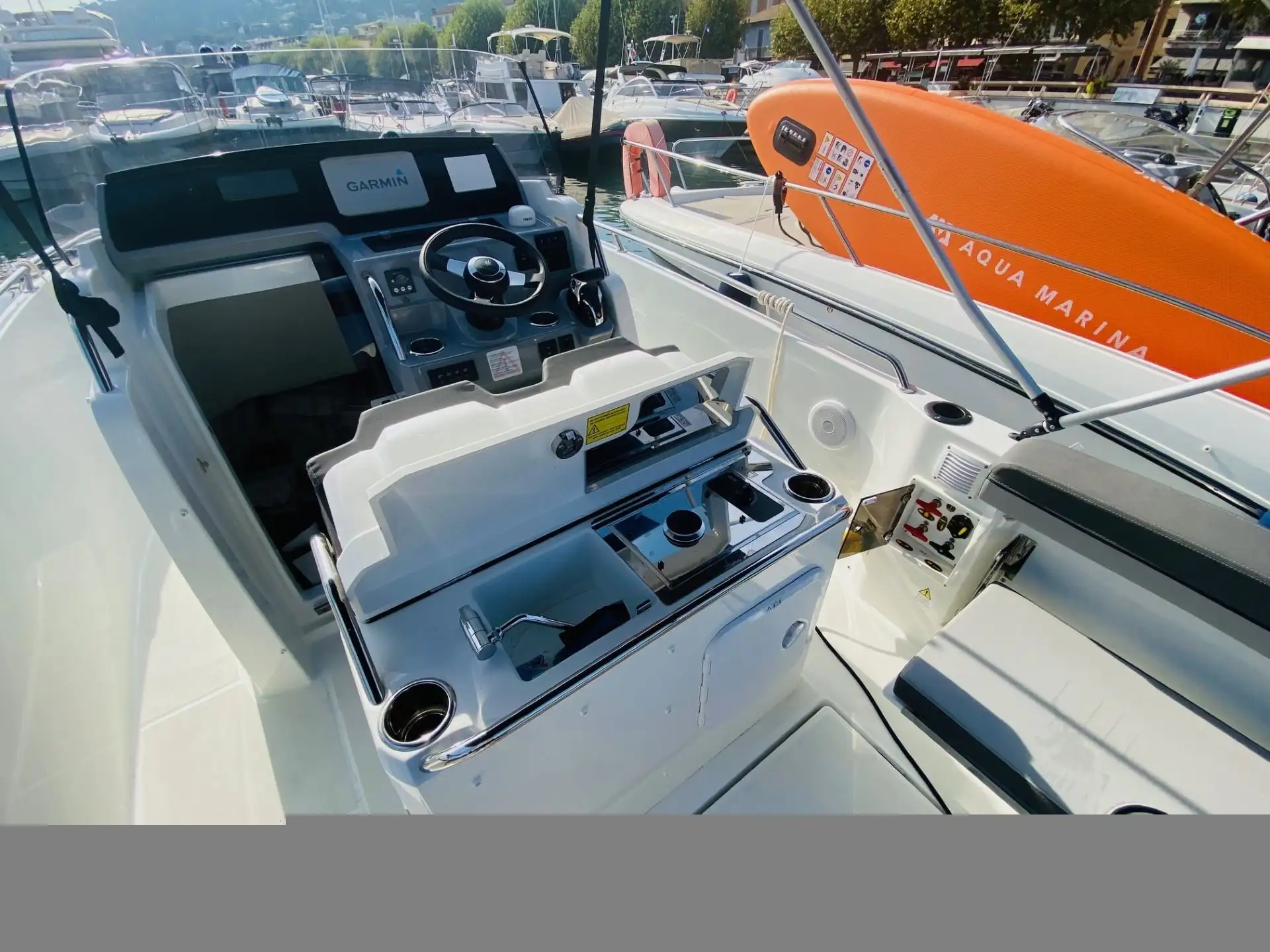 This boat, delivered on 15/04/2024, still under manufacturer's and Yamaha's warranty, is in like-new condition. It features a bow platform with ladder, Garmin 92 SV UHD GPS fishfinder, Graphite aluminum Bimini, ski mast, Fusion audio system, front sunbathing area, marine toilet with black water tank, luxury side benches with backrest, external fridge with battery, seat and console covers. With only 30 hours of use, this boat will be delivered with its 20-hour service completed.