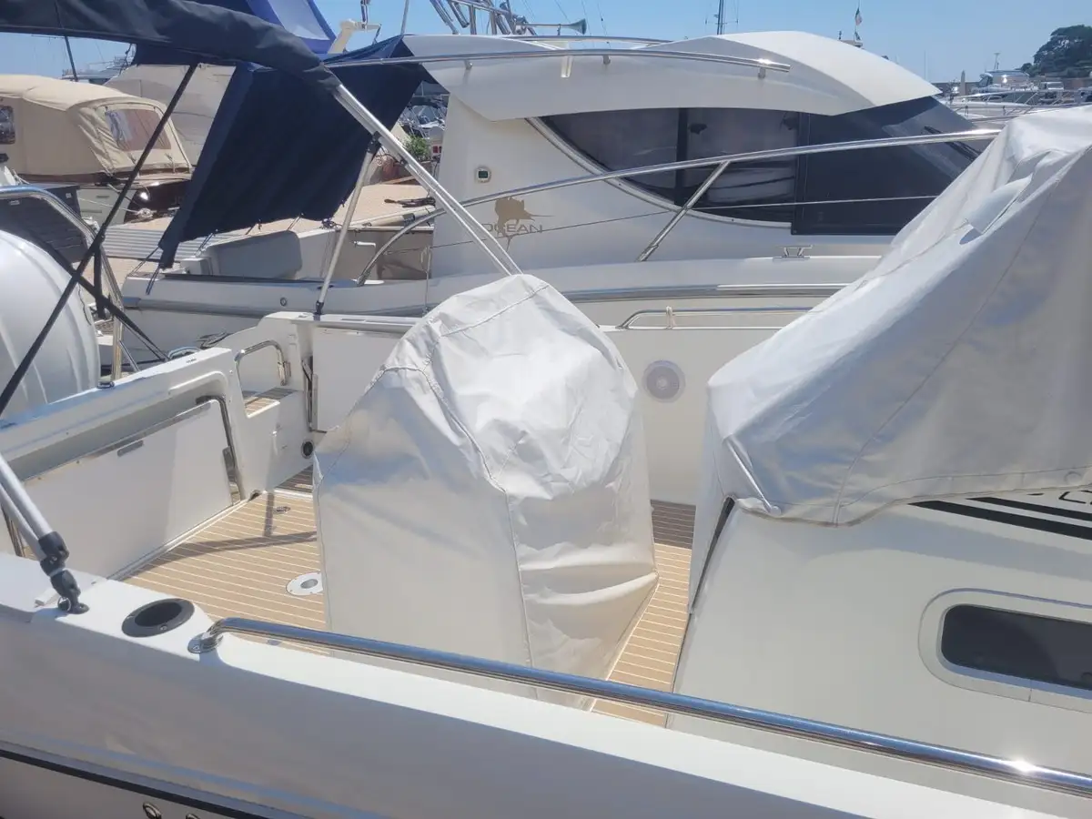 We are pleased to offer this stunning Cap Camarat 7.5 Center Console with a Yamaha F 300 USB SBW white engine, equipped with electric controls, electric steering, autopilot, and bow thruster.