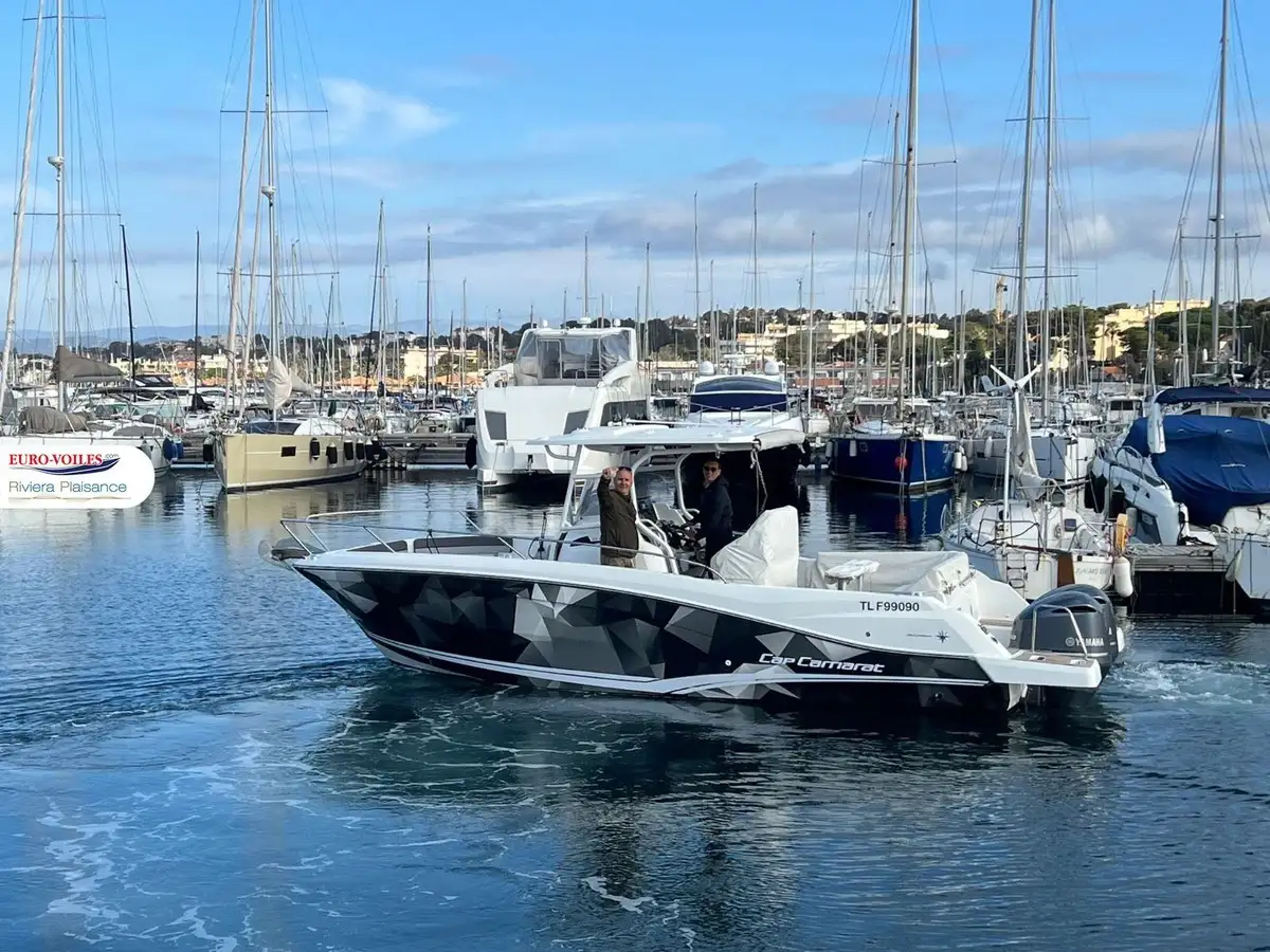 One of a kind in the world: Jeanneau Cap Camarat 9.0 CC, owner’s version, 2020 model with custom wrapping. This boat perfectly combines sportiness, comfort, and versatility. Featuring a hard top and 2x250 YAMAHA engines, it will ensure you stand out on the water.
