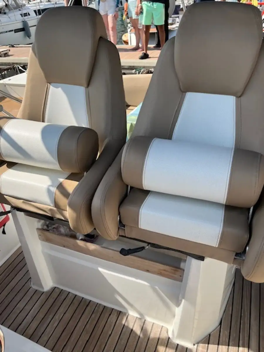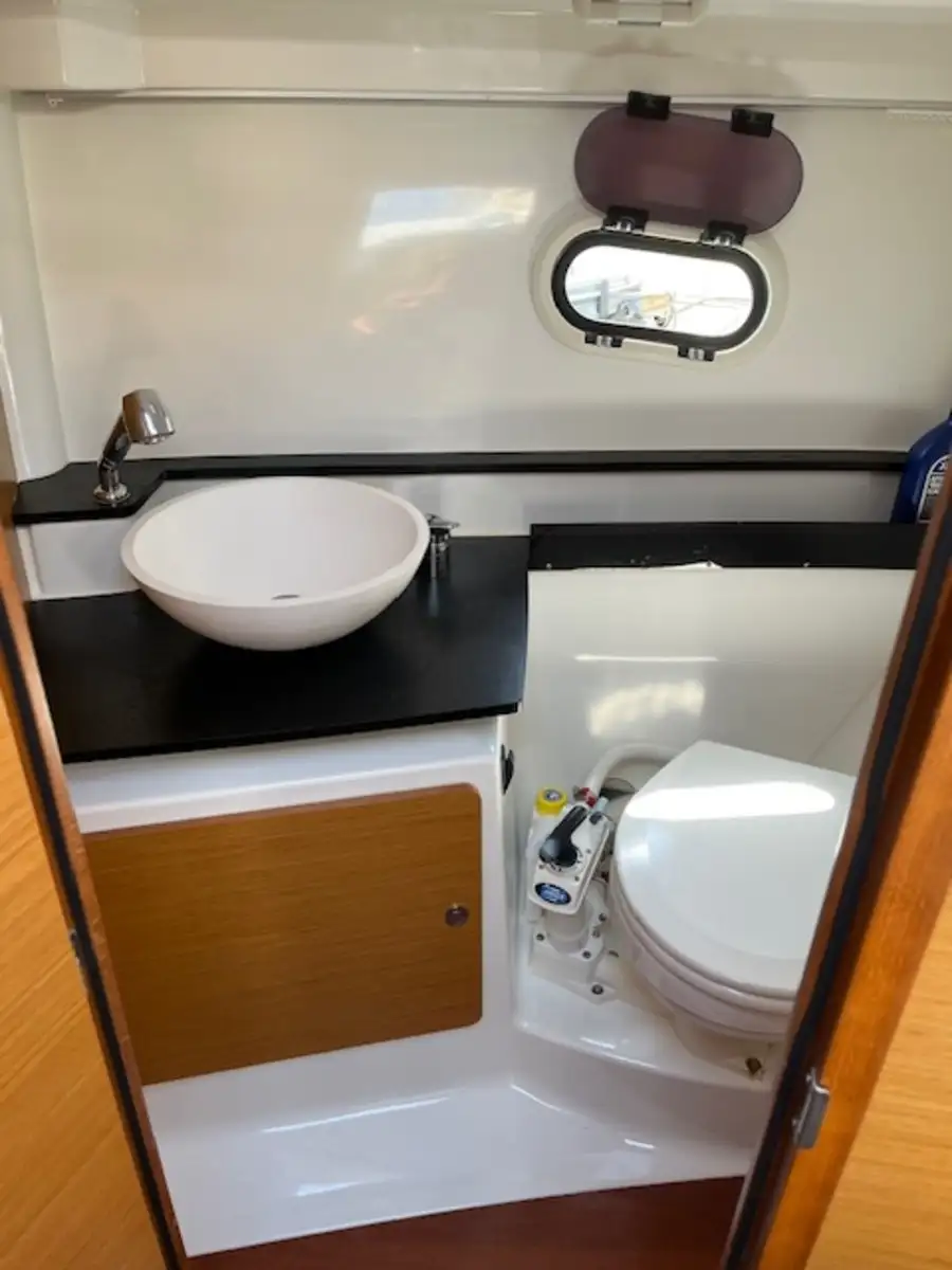 The spacious and versatile cockpit is perfect for hosting friends and family, while the large forward sundeck invites you to relax and enjoy the sun. Inside, the living space is just as impressive, featuring a bright cabin, galley, bathroom with toilet, and double berths—ideal for extending your time on the water over several days.
