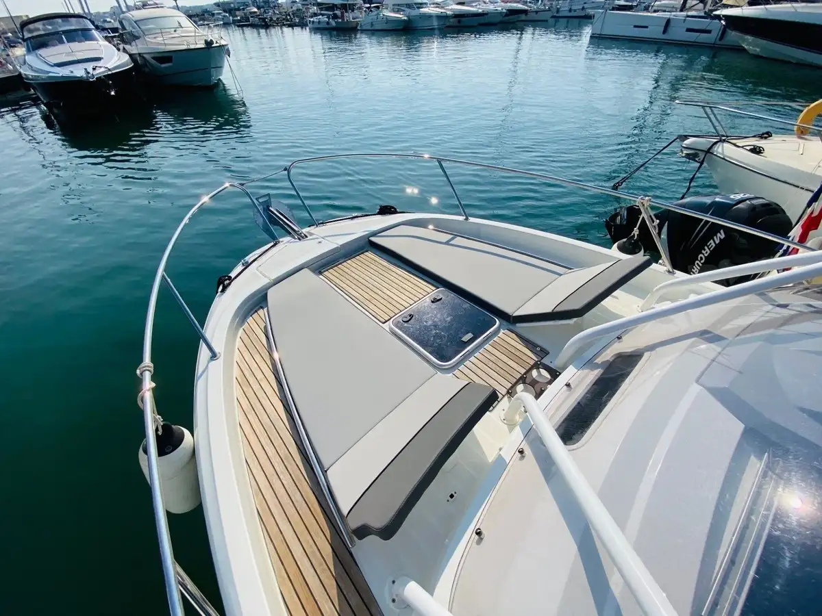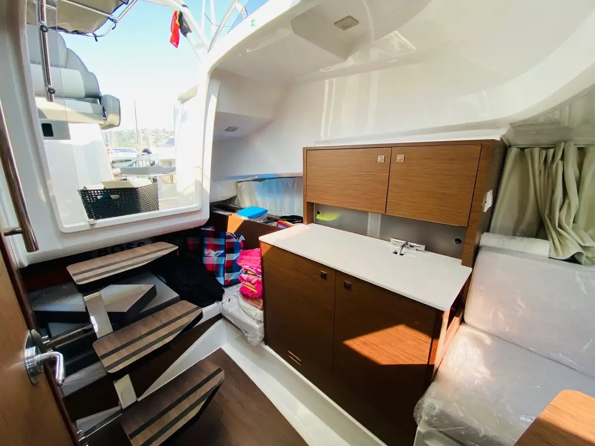 Lots of equipment on board: large Garmin 1223 GPS, bow thruster, ZIPWAKE flaps, Garmin 215 i VHF, Fusion audio system, protective cover kit, sliding cap, teak table + rear sundeck, never-before-used cabin.