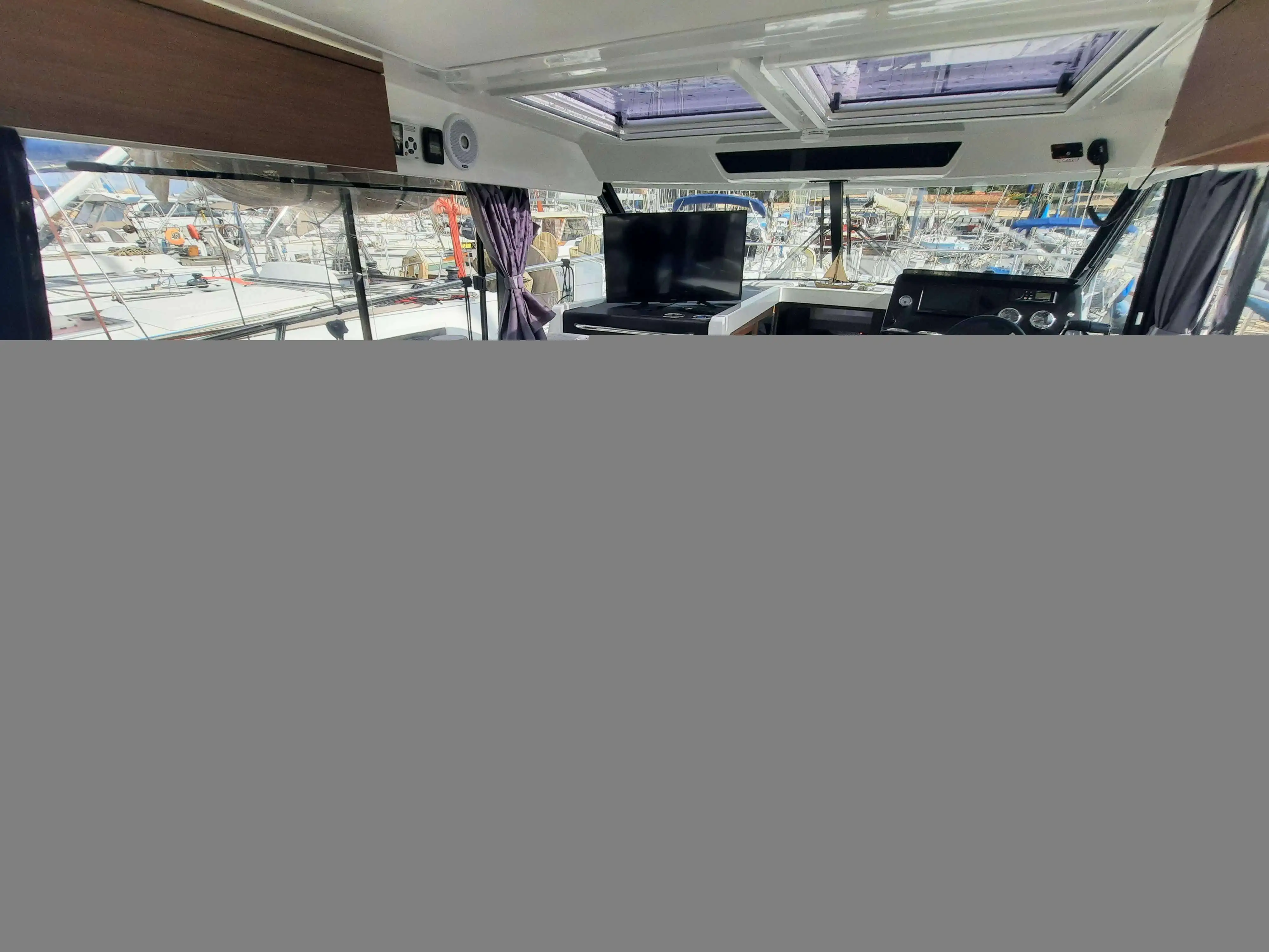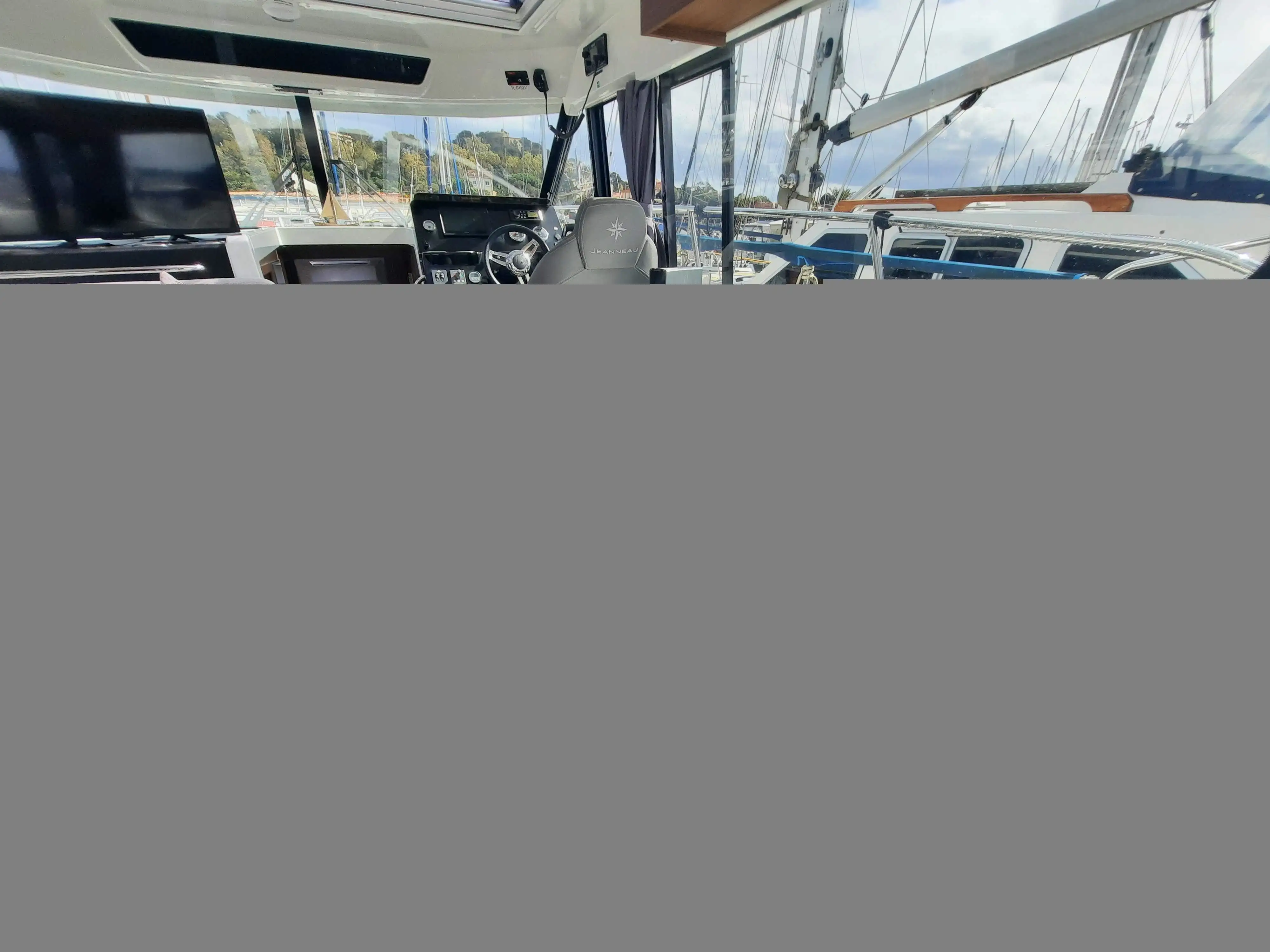 Fully equipped: solar panel with battery management system, VHF AIS, depth sounder, GPS, Fusion Hi-Fi pack, bow thruster, electric trim tabs, aft enclosures, additional 100L water tank, TV + antenna, and teak cockpit.