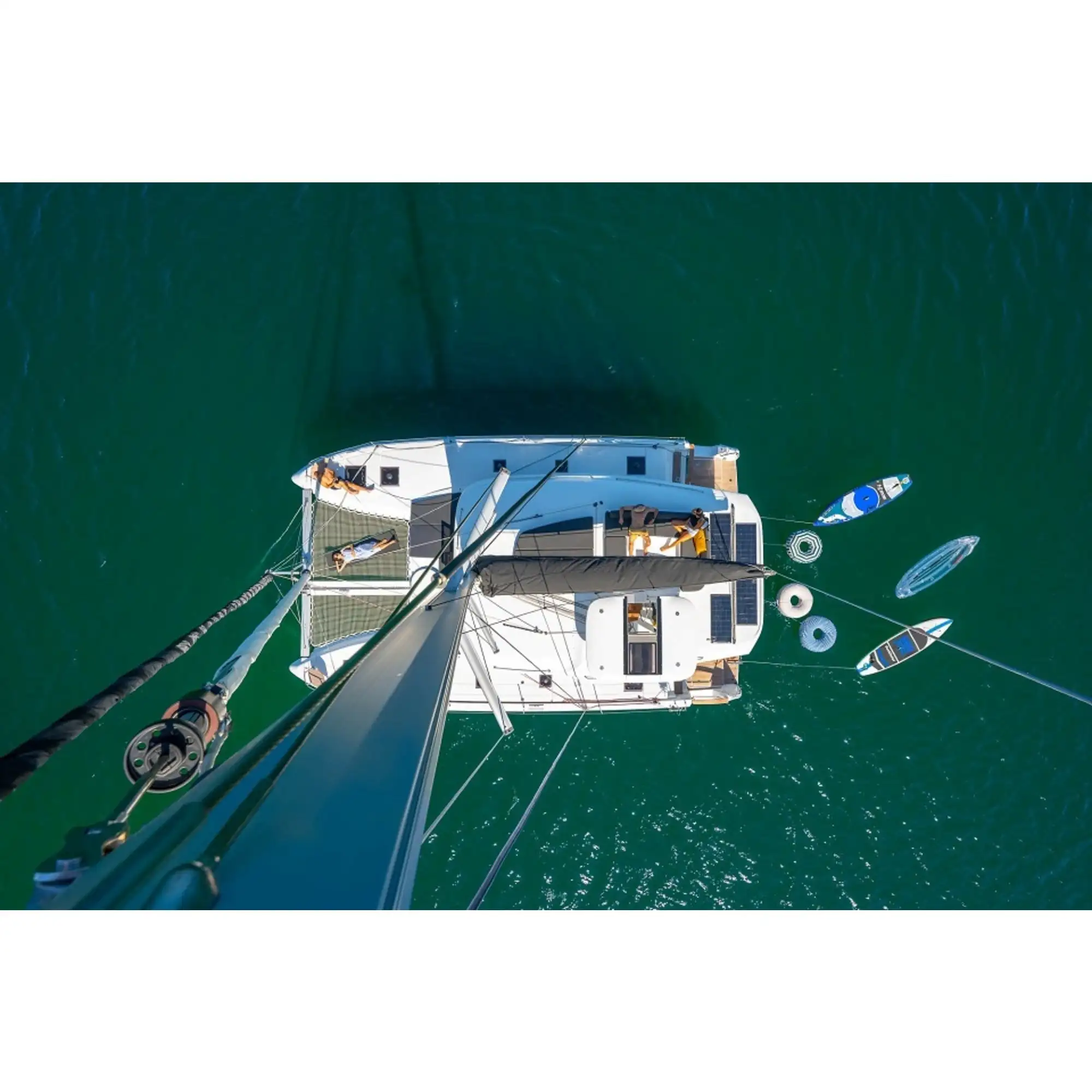 Enjoy aboard our Lagoon 43, a unique unit available for rent in the Mediterranean – Designed to be adaptable, it innovates with its living space thanks to its new hull, offering even more comfort and an additional opening at the rear of the hulls. This innovative solution facilitates circulation between the boat and the dock, combining safety and comfort, with a focus on onboard well-being. The boat of the year and your next sailing adventures… The sea is yours to enjoy!