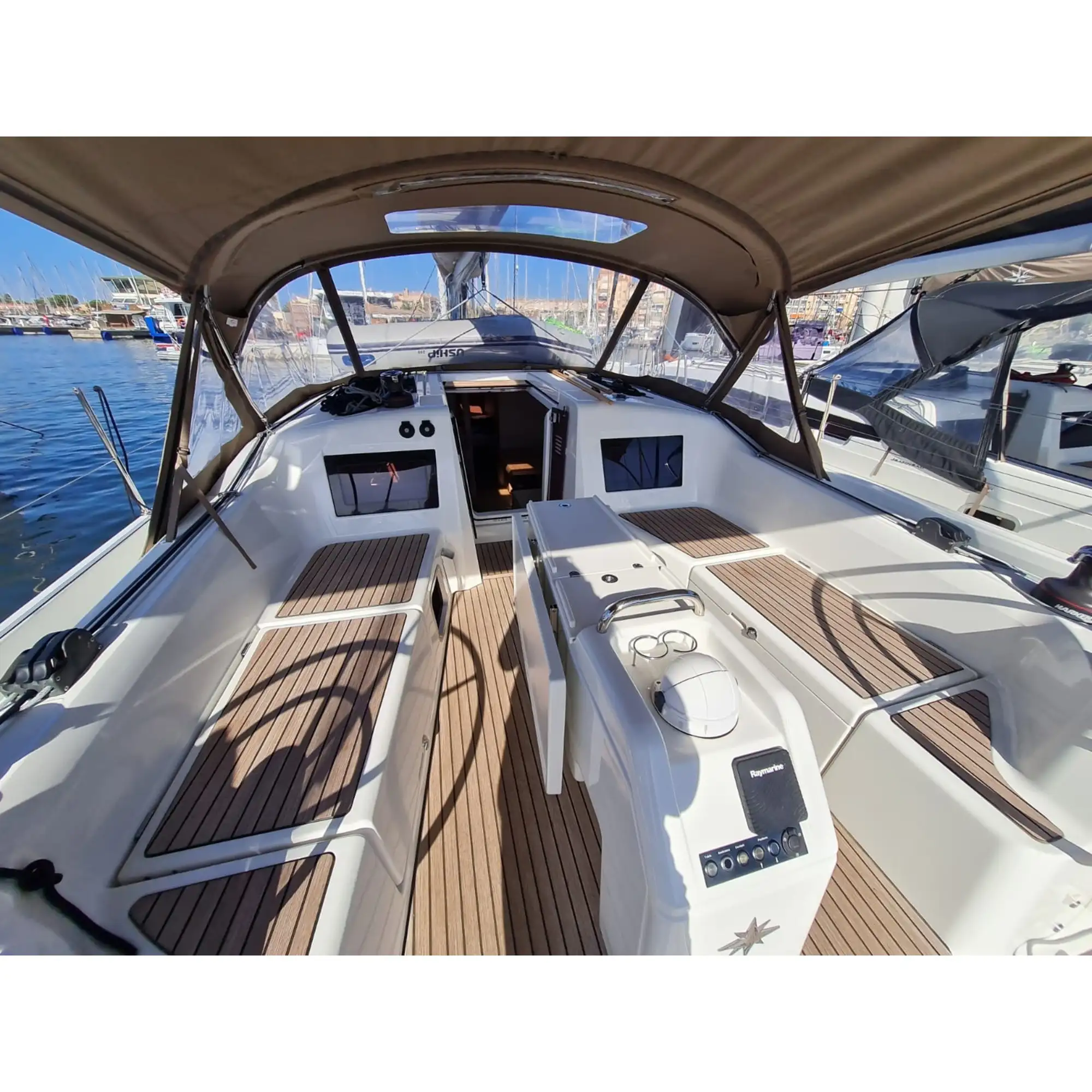 Bimini de cockpit avec toile de liaison a la capote