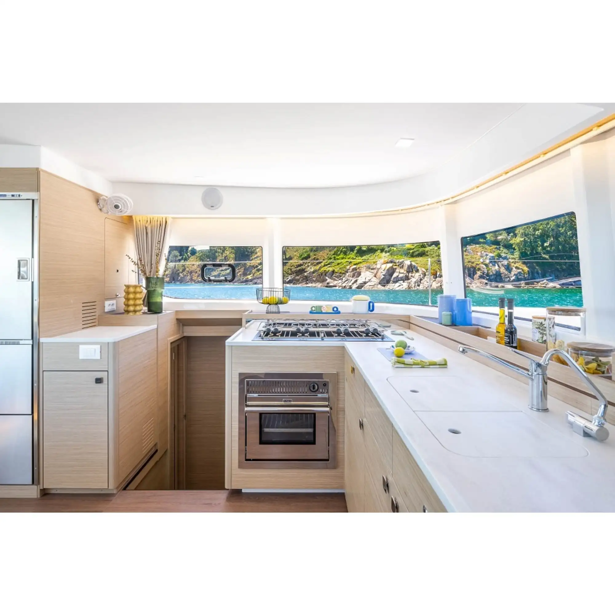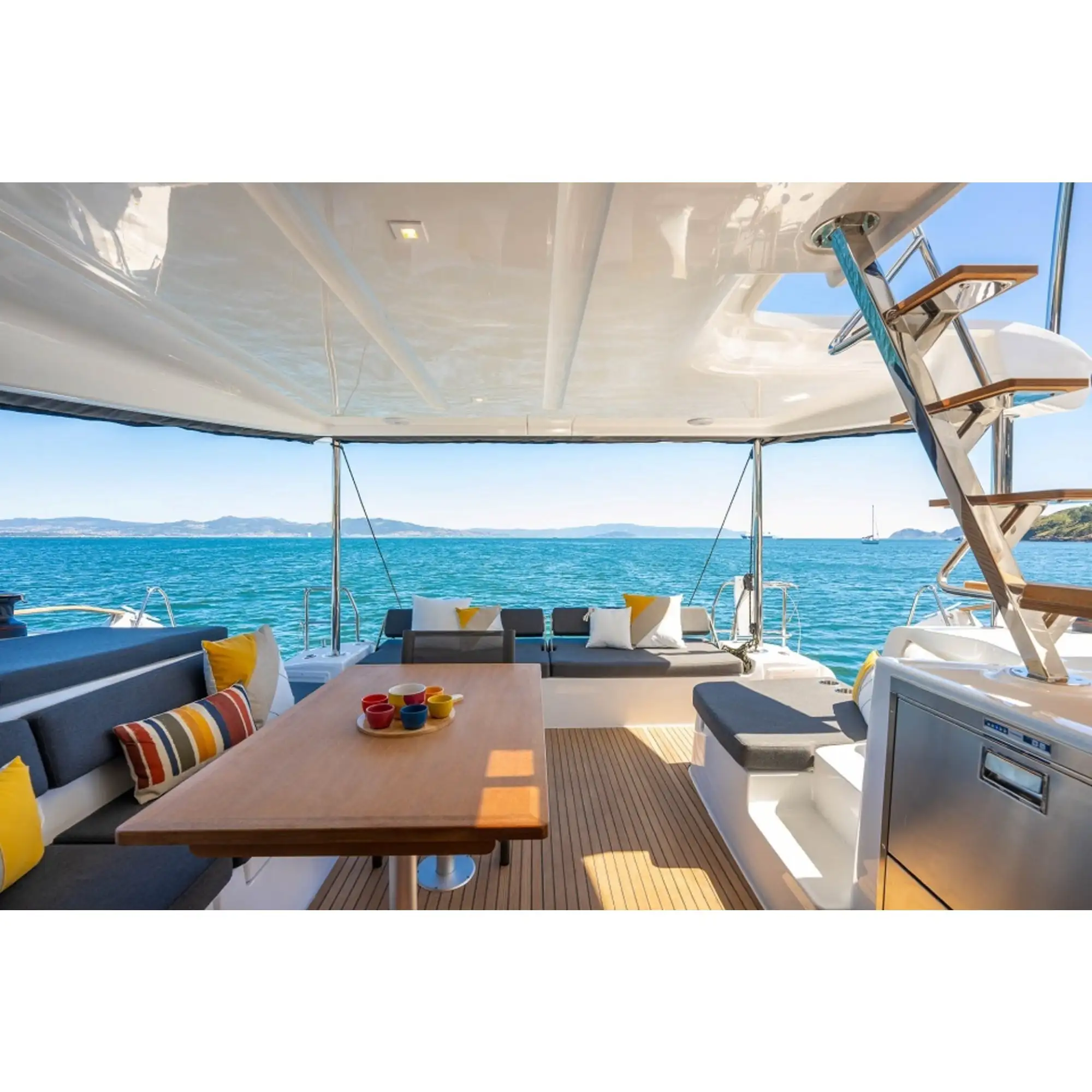 Profitez à bord de notre Lagoon 43 unique unité disponible a la location en Mediterrannée - Conçu pour être adaptable, il innove par son habitabilité grâce a sa nouvelle caréne, offrant encore plus de confort, une ouverture supplémentaire au niveau de l’arrière des coques. Cette solution innovante facilite la circulation entre le bateau et le quai, alliant sécurité et confort, dans un souci de bien-être à bord. Le bateau de l'année et de vos prochaines navigations.. La mer s'offre à vous!