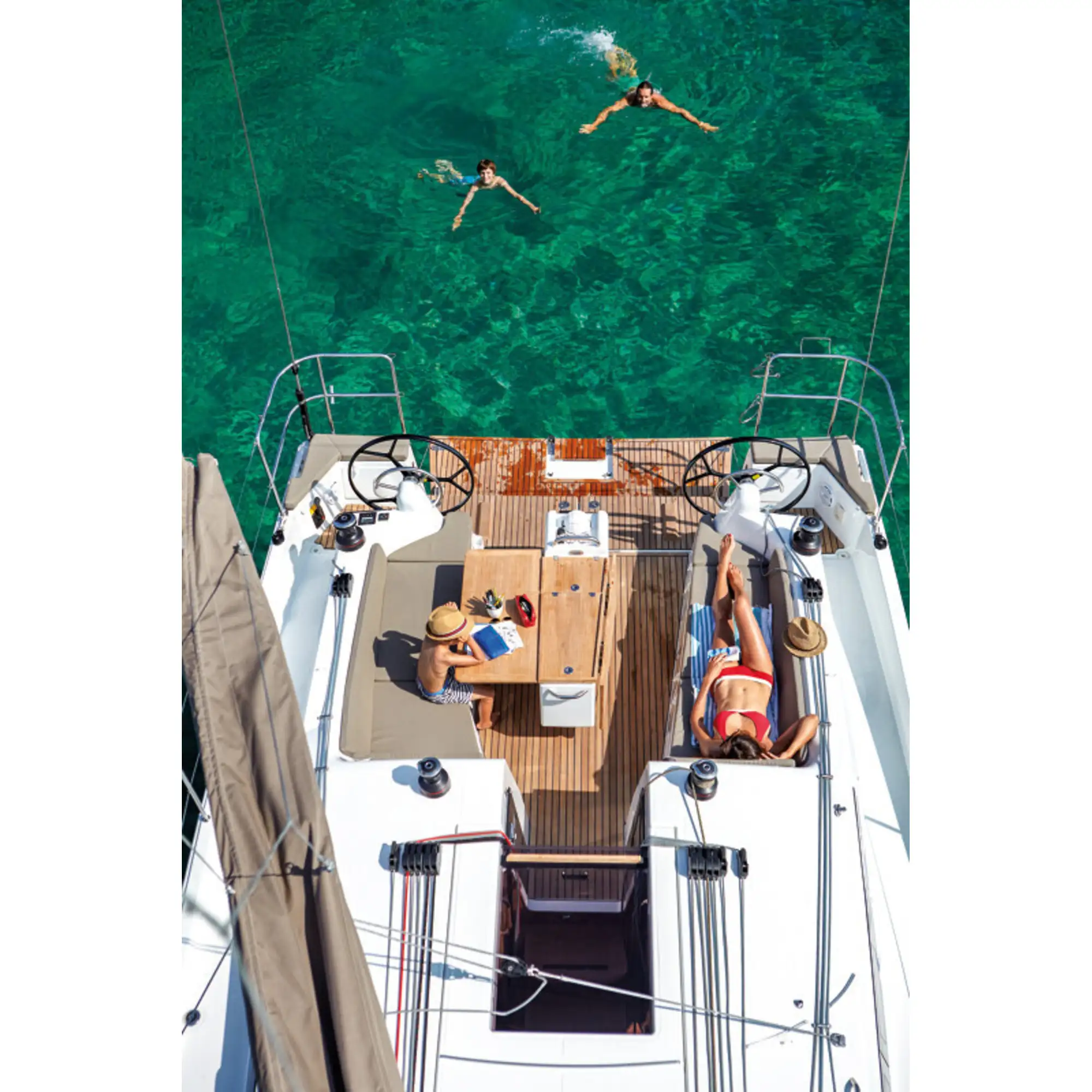 Évadez-vous à bord de « ESCAPE », notre tout nouveau Sun Odyssey 410, mis à l’eau en 2025. Avec ses 3 cabines et 2 salles d’eau, son carré transformable et sa plateforme arrière ouverte sur la mer, ce voilier moderne vous promet des moments uniques entre Hyères, les îles d’Or et la Corse. Facile à manœuvrer grâce à son propulseur, confortable et lumineux, ESCAPE est l’allié parfait pour des vacances sous le signe de la liberté entre amis ou en famille.