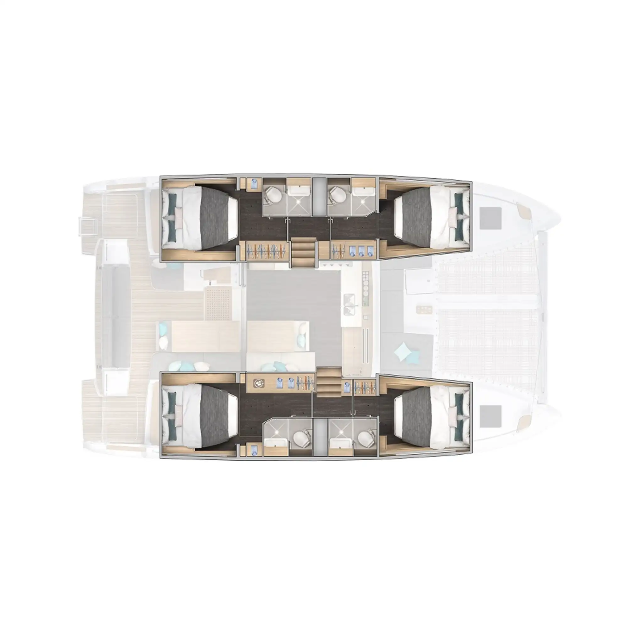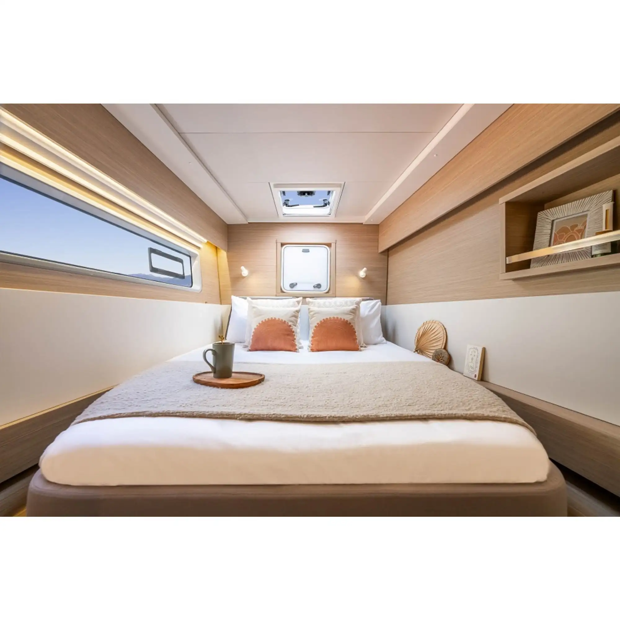 Profitez à bord de notre deuxieme Lagoon 43 disponible au depart de Hyeres - Conçu pour être adaptable, il innove par son habitabilité grâce a sa nouvelle caréne, offrant encore plus de confort, une ouverture supplémentaire au niveau de l’arrière des coques. Cette solution innovante facilite la circulation entre le bateau et le quai, alliant sécurité et confort, dans un souci de bien-être à bord. Le bateau de l'année et de vos prochaines navigations.. La mer s'offre à vous!